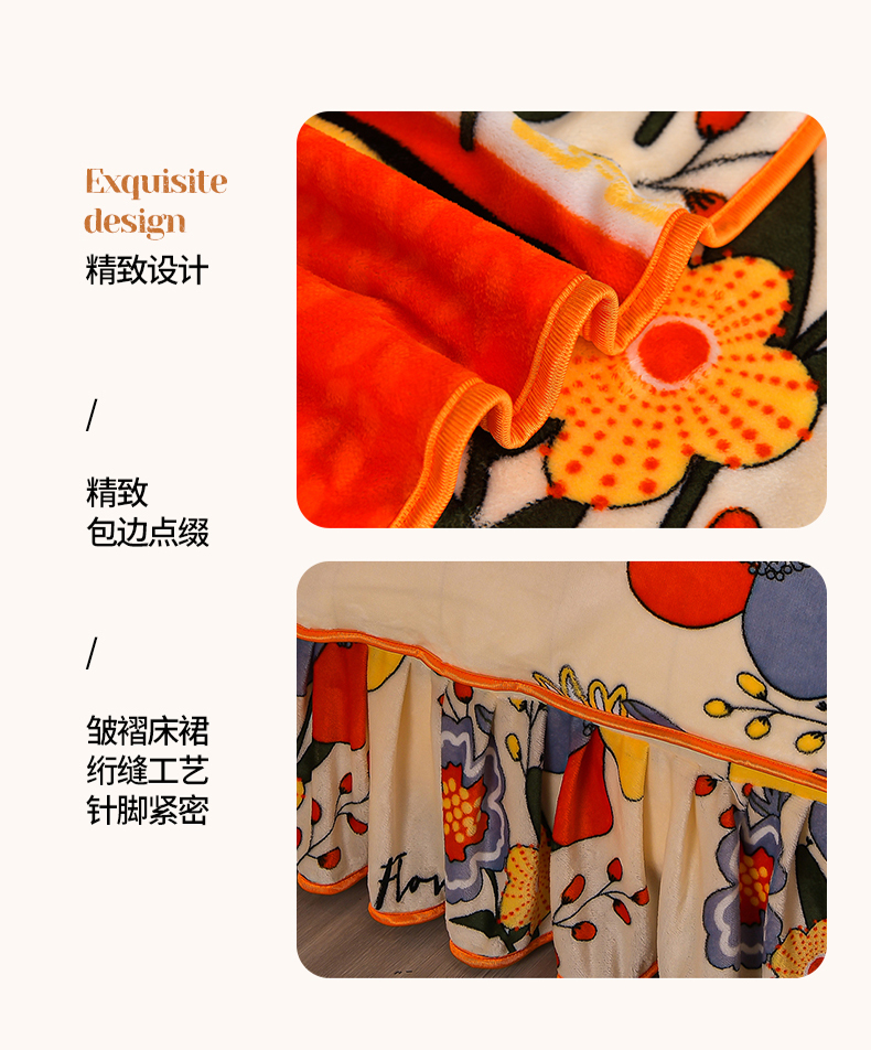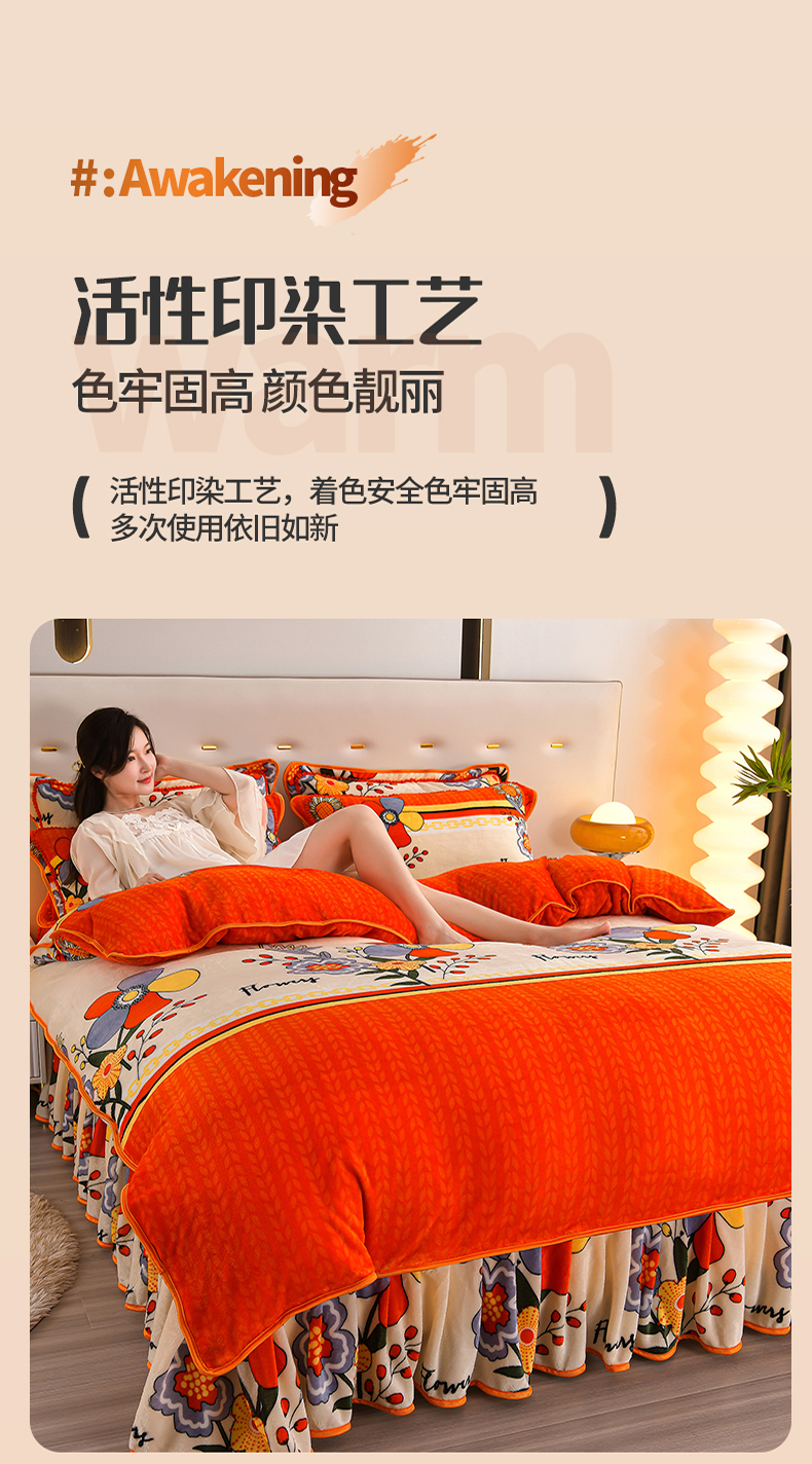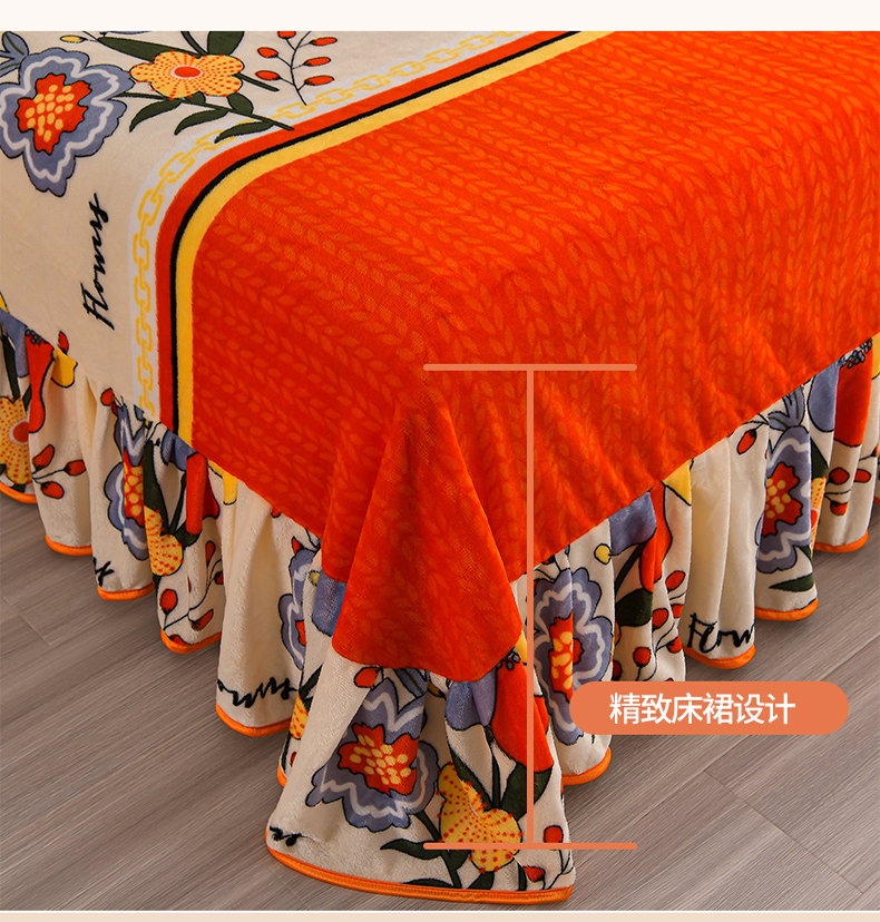 绒品壹家 2025新款电商直播爆款高克重7斤牛奶绒金貂绒印花床裙款三件套四件套 国色天香,国色天香