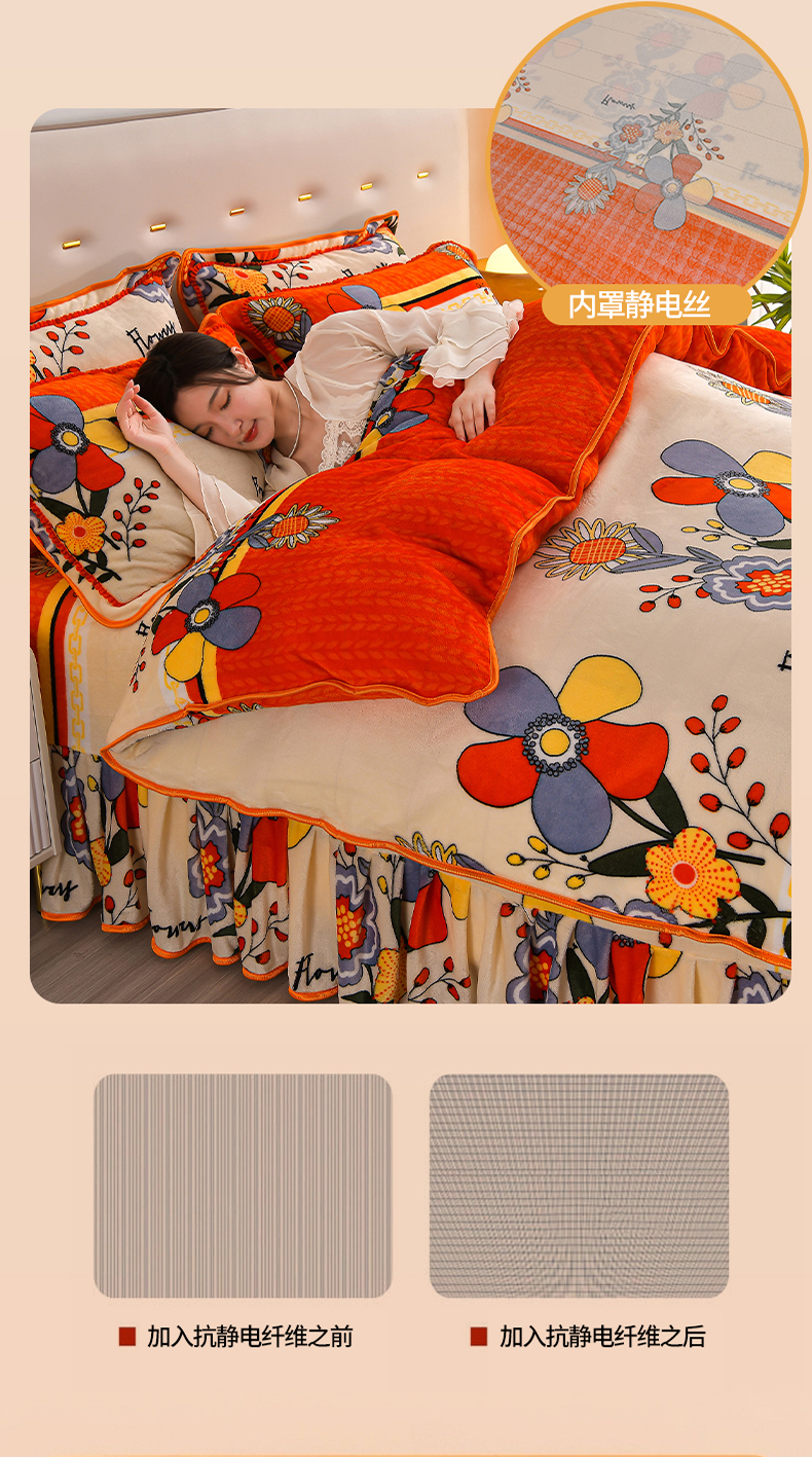 绒品壹家家纺 2024新款5斤加厚金貂绒四件套 多姿多彩