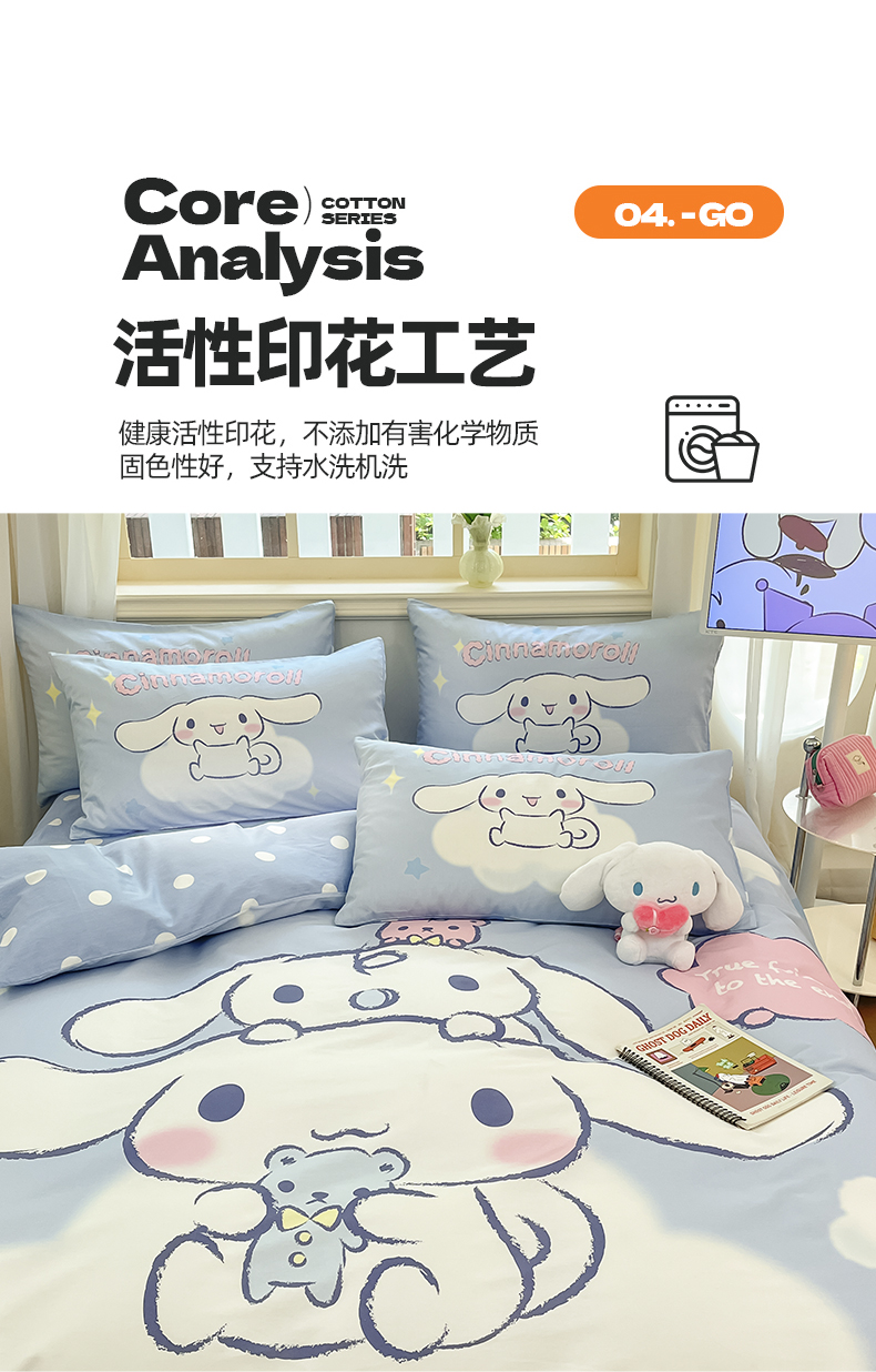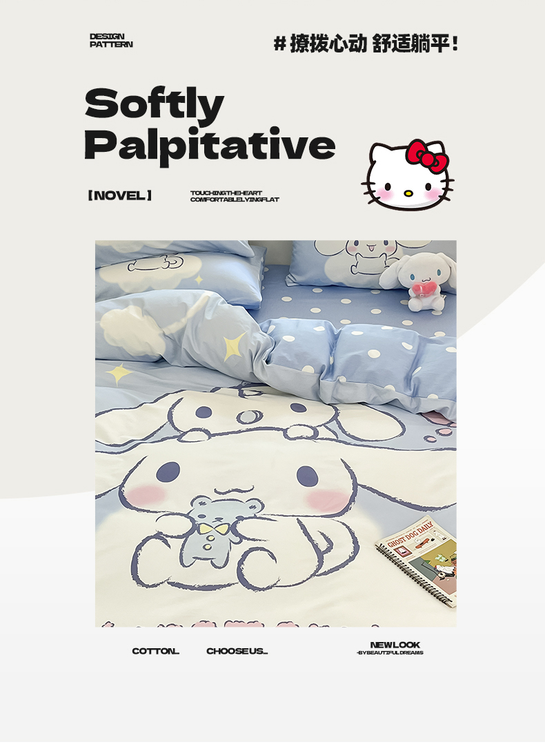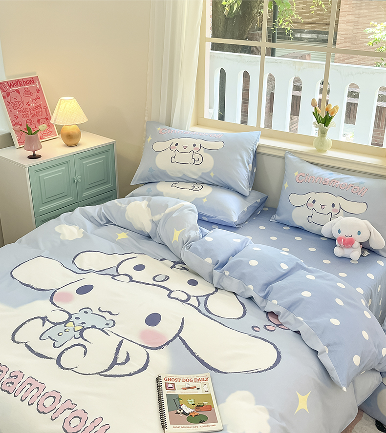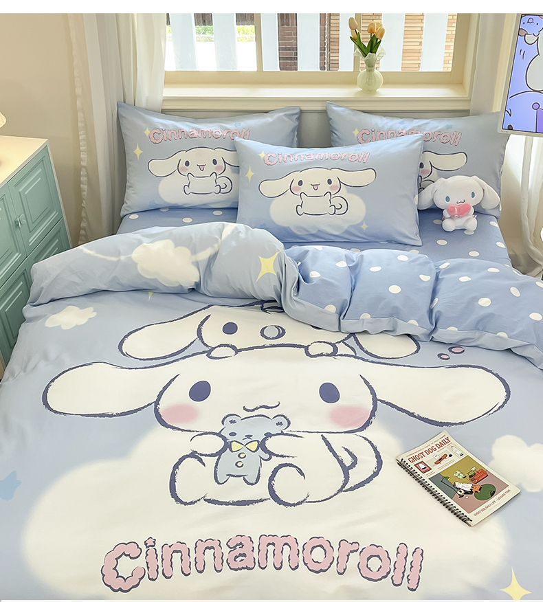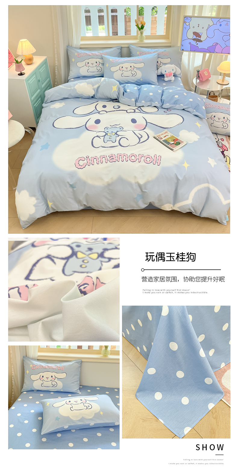 当前位置: 91家纺网 > 商品网购 > 床品套件 > 四件套 > 全棉普通四件套 > 桃子家居 2024纯棉大版三丽鸥卡通平网印花系列四件套 棉大版-D玩偶玉桂狗