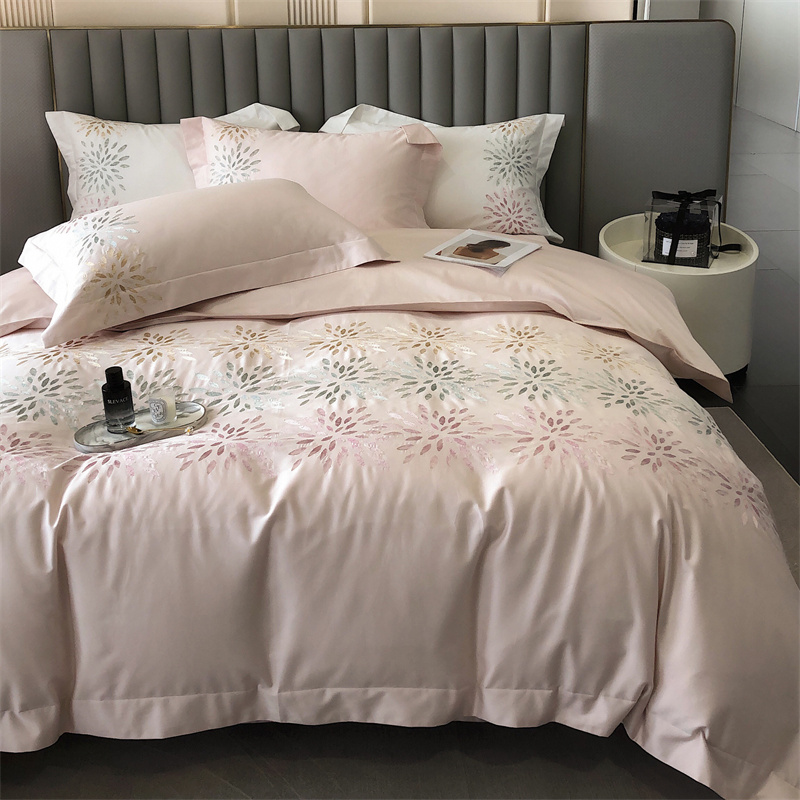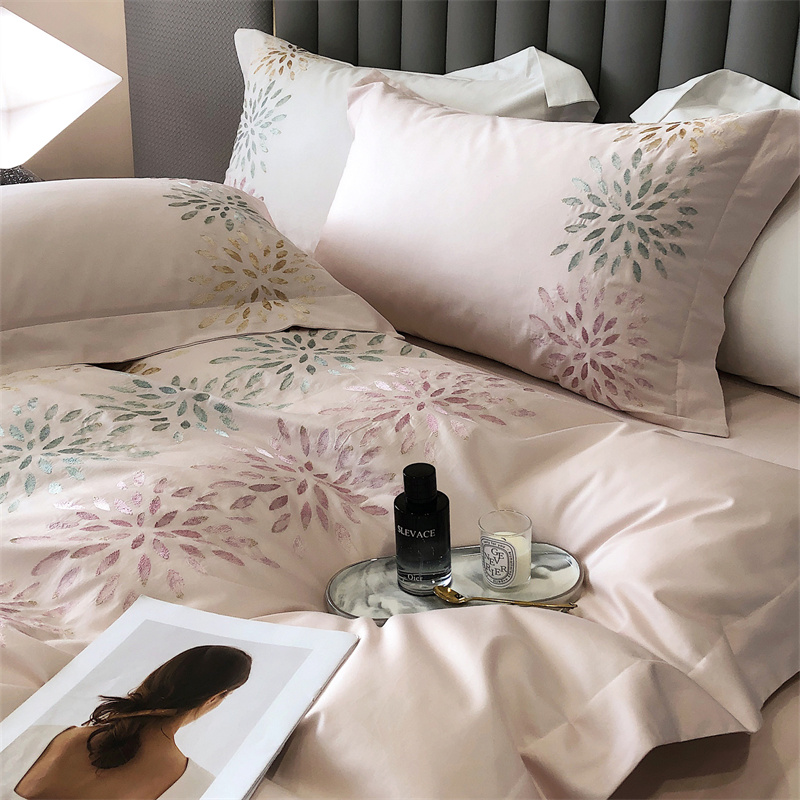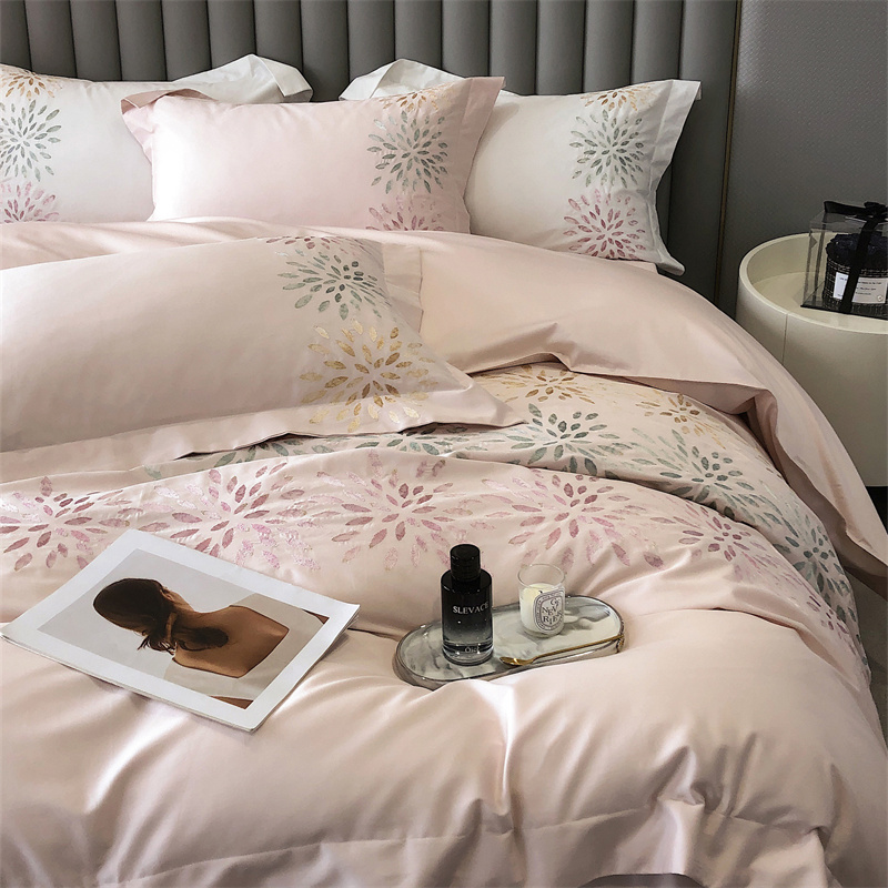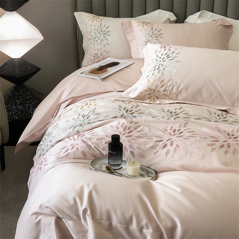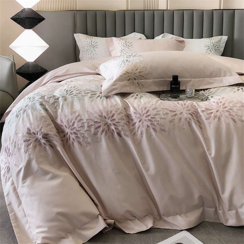 鹿班家居 2024新款100支长绒棉精密刺绣系列四件套-南乔 南乔-雾粉