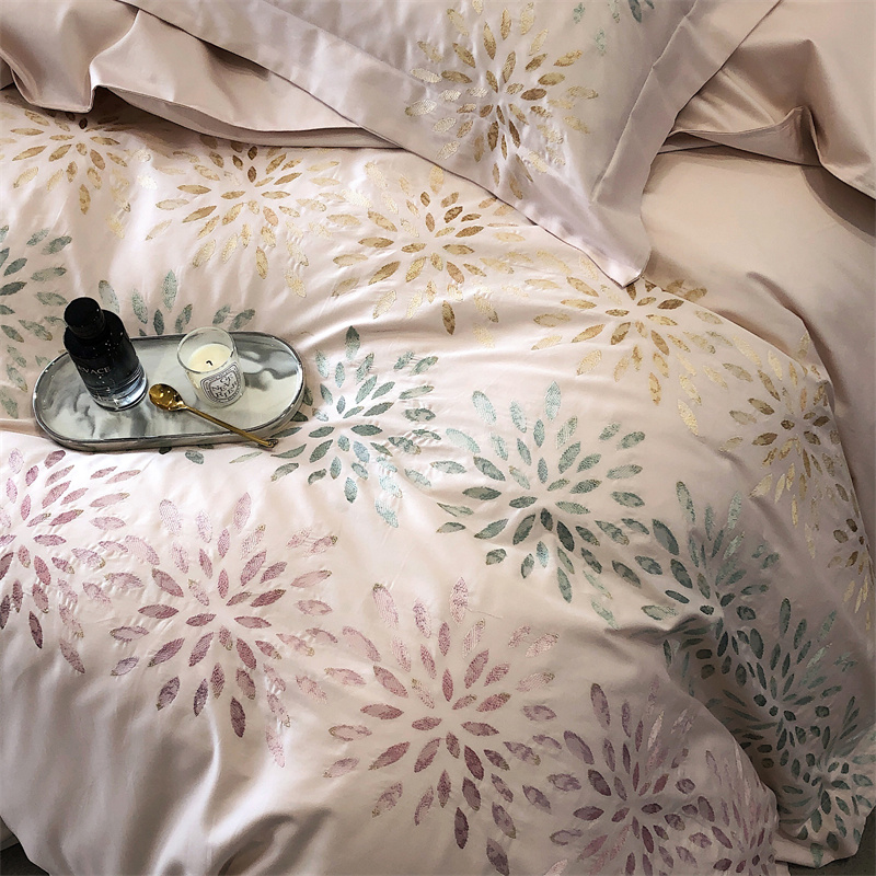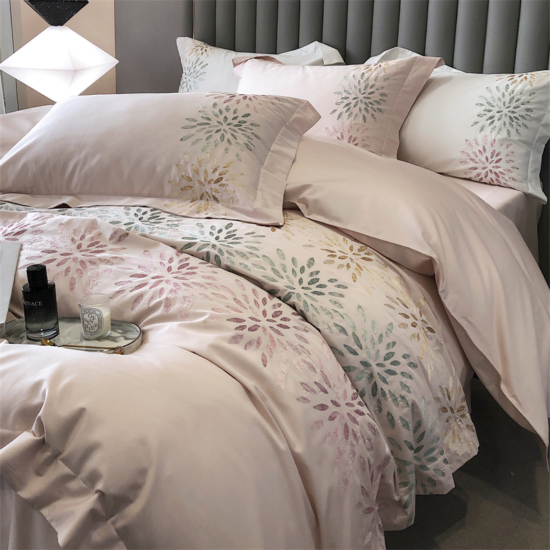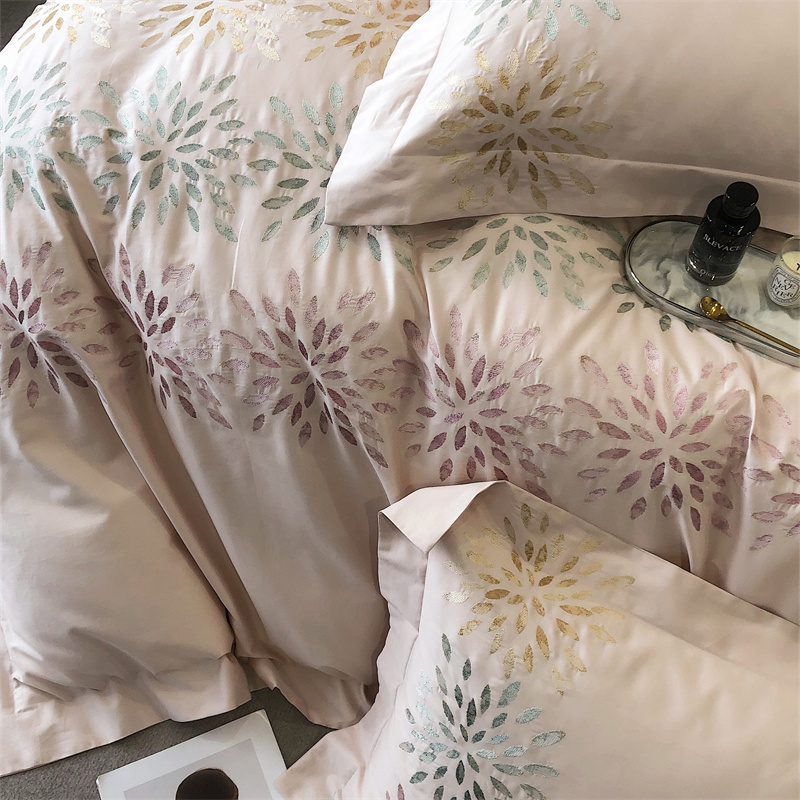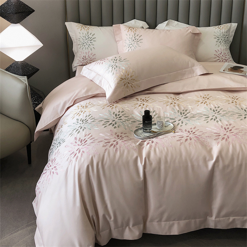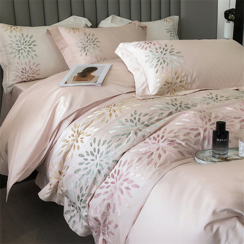 鹿班家居 2024新款100支长绒棉精密刺绣系列四件套-南乔 南乔-雾粉