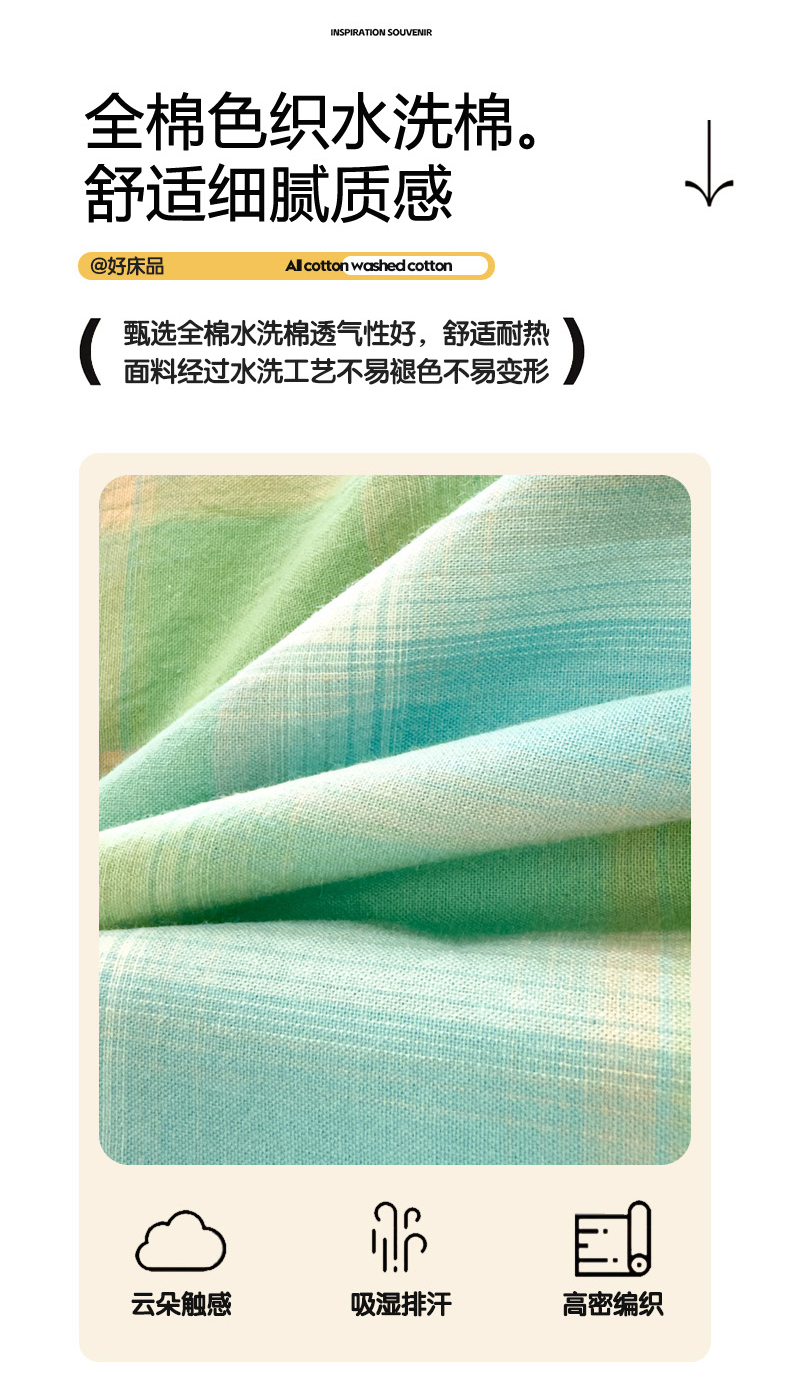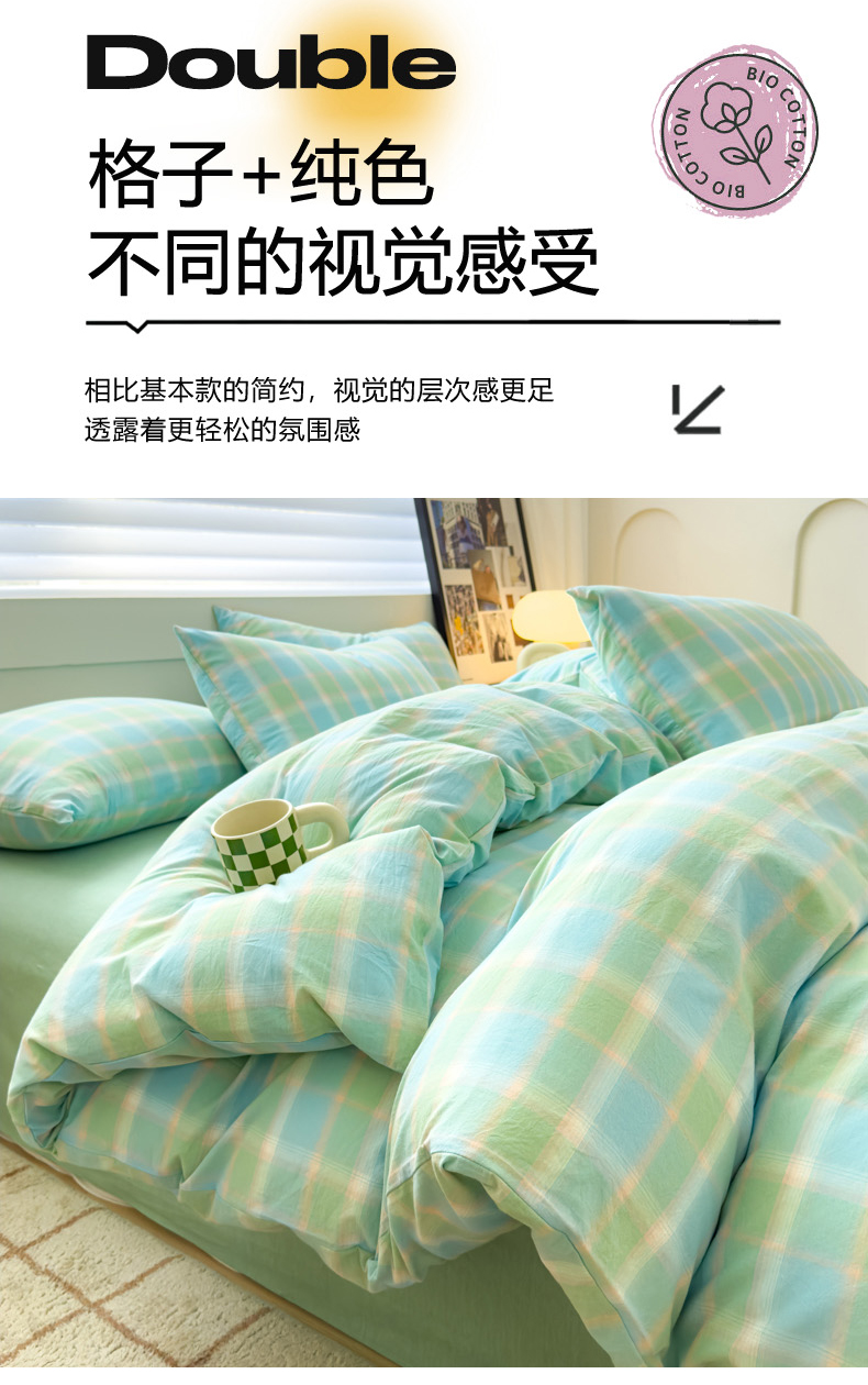星尚家纺 2024新款全棉色织水洗棉学生三件套 佛暖-果绿