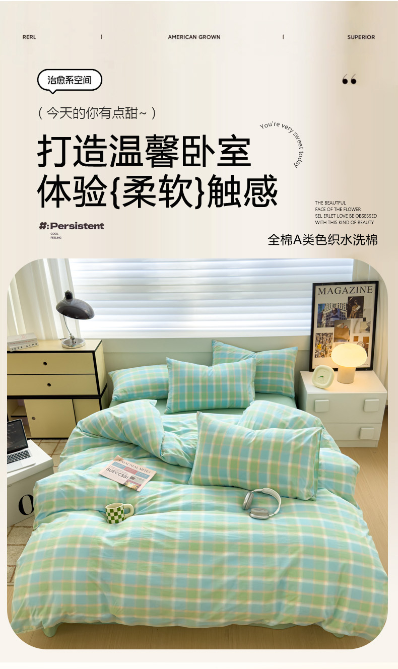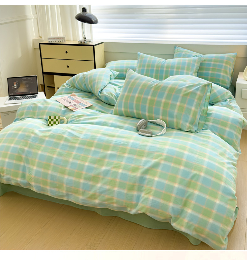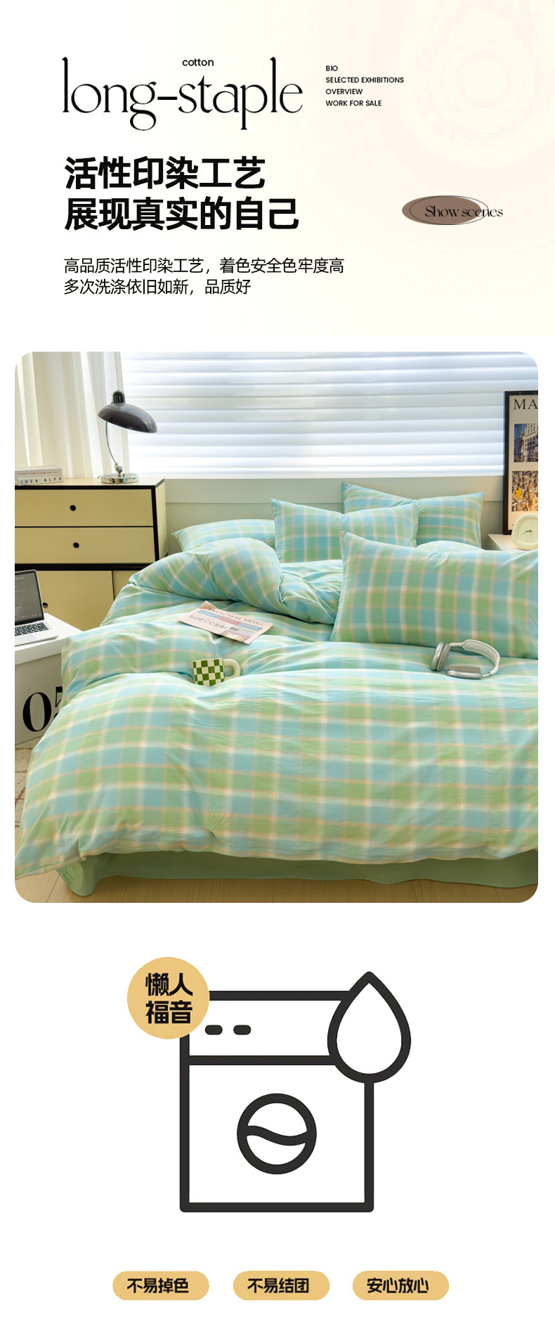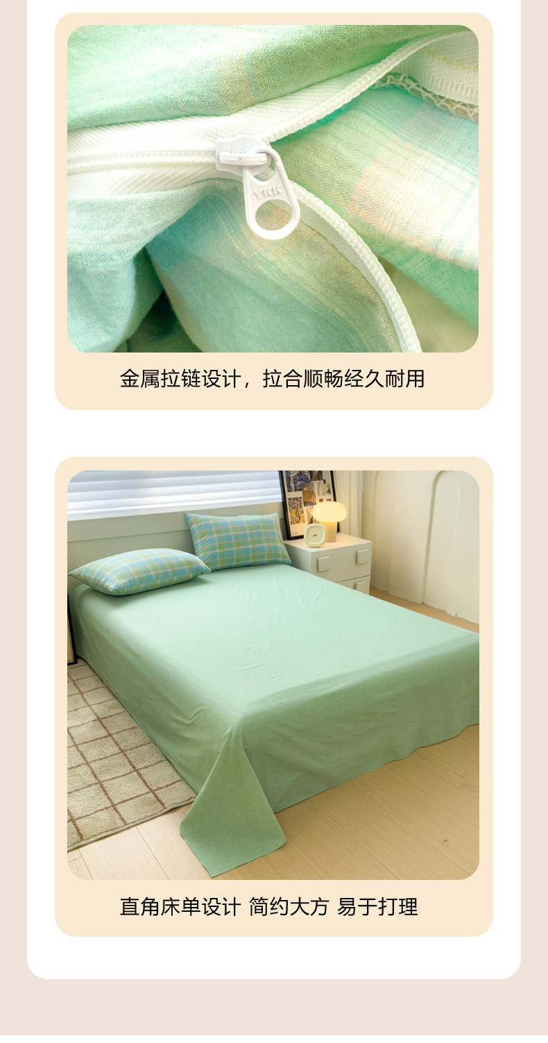 商品名称:星尚家纺 2024新款全棉色织水洗棉学生三件套 佛暖-果绿