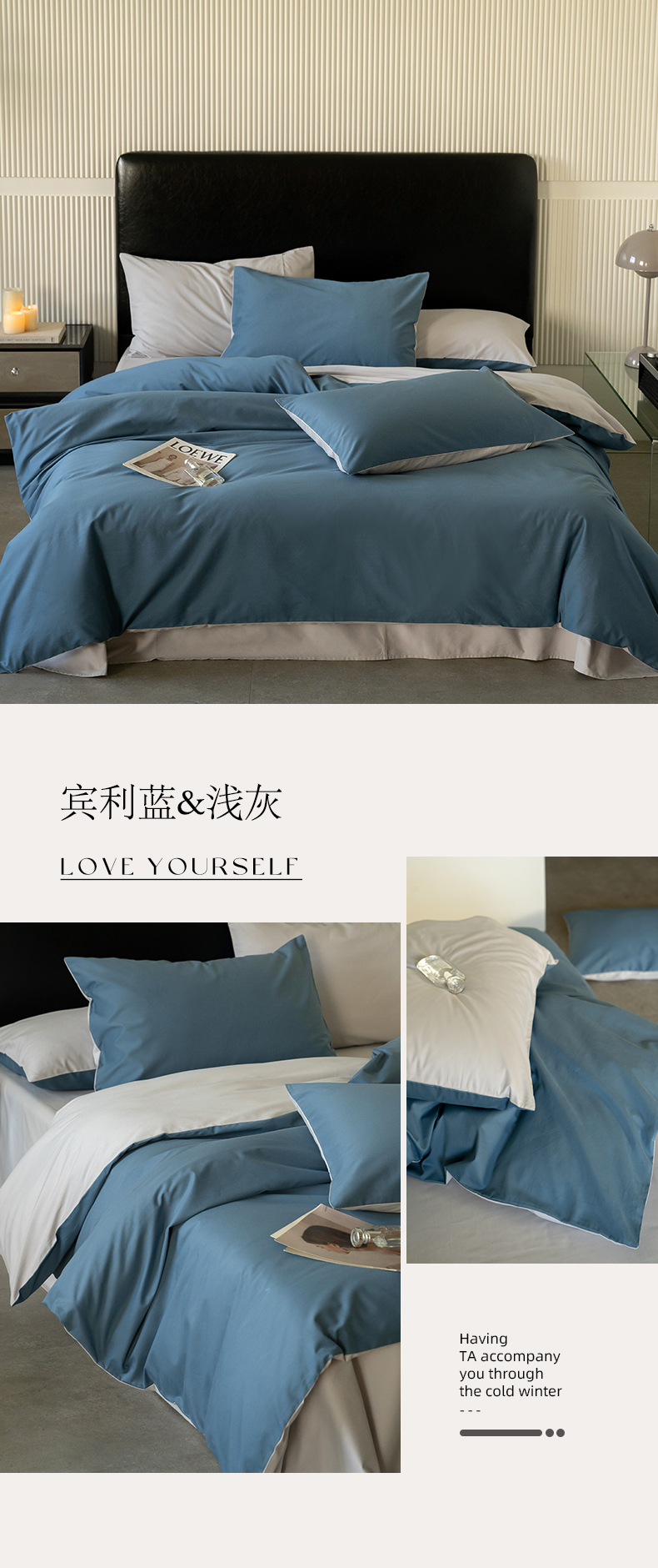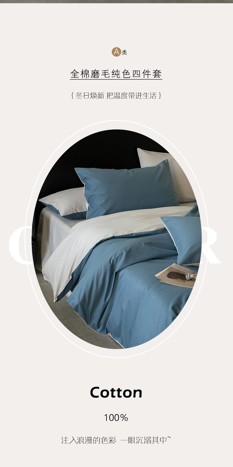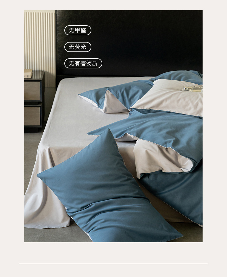 当前位置: 91家纺网 > 商品网购 > 床品套件 > 四件套 > 普通磨毛四件套 > 云栖家居 2024全棉A类磨毛四件套 宾利蓝&浅灰