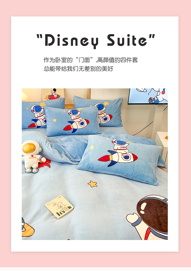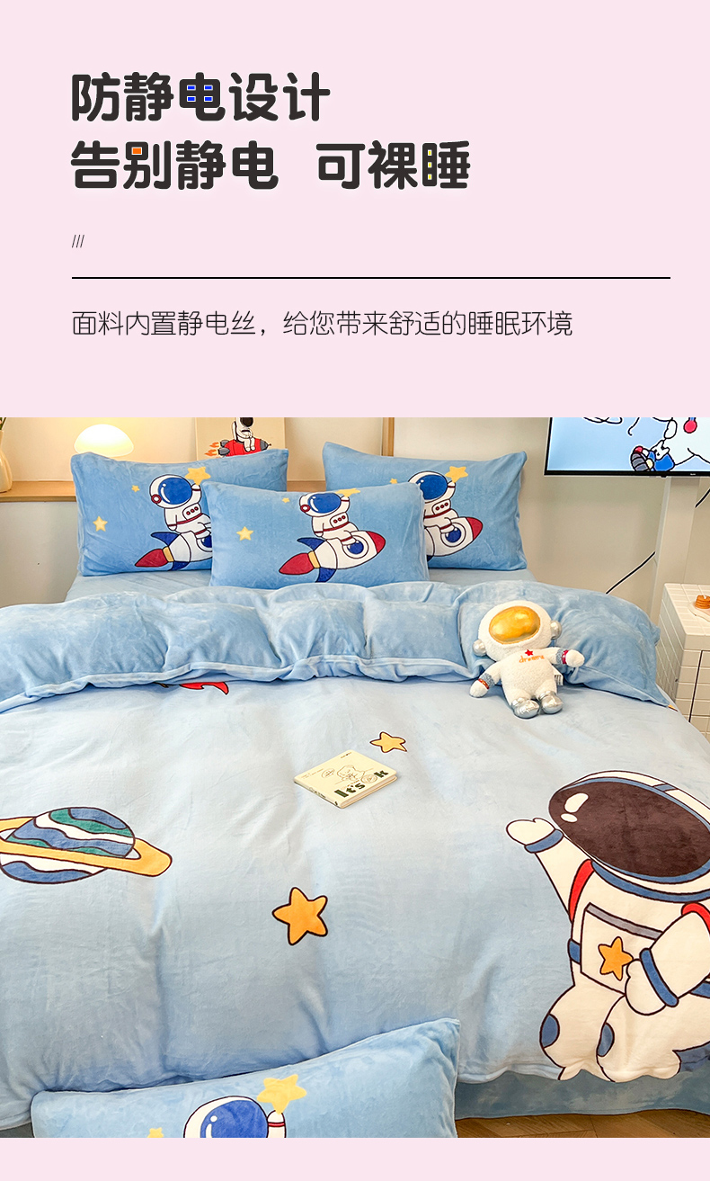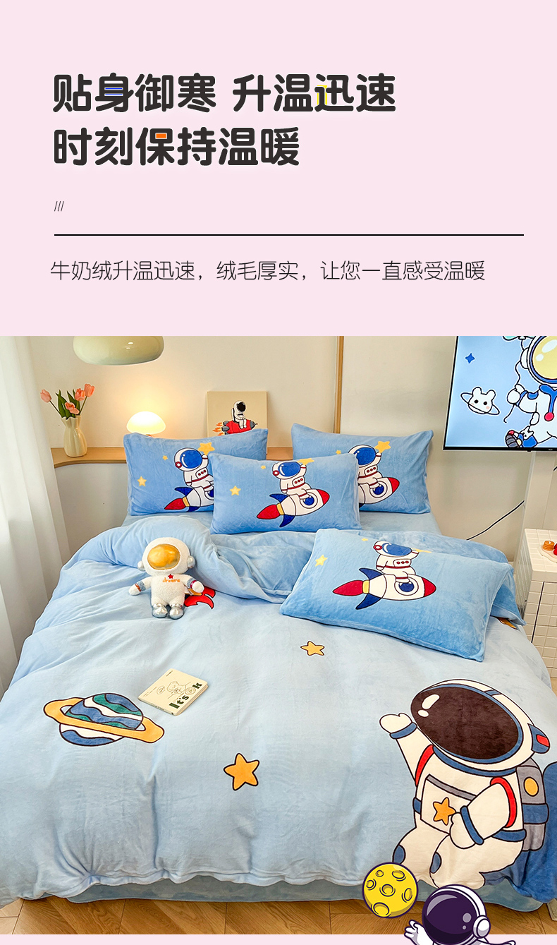 当前位置: 91家纺网 > 商品网购 > 床品套件 > 四件套 > 牛奶绒四件套 > 孩子王家纺 2025新款专版花色太空人大版卡通学生宿舍双面加厚牛奶绒系列四件套--提供买家秀 星际旅途