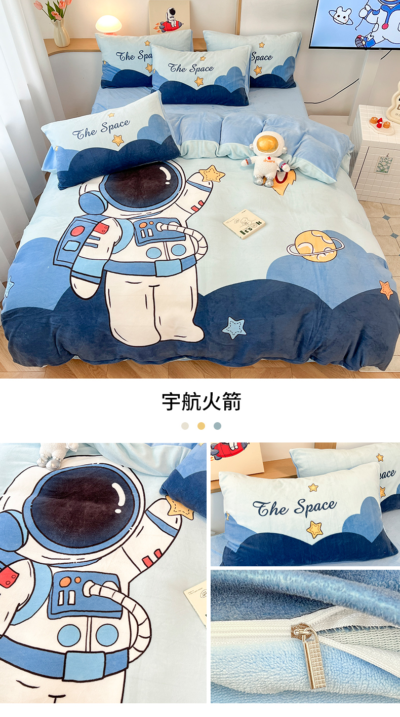 当前位置: 91家纺网 > 商品网购 > 床品套件 > 四件套 > 牛奶绒四件套 > 孩子王家纺 2025新款专版花色太空人大版卡通学生宿舍双面加厚牛奶绒系列四件套--提供买家秀 宇航火箭
