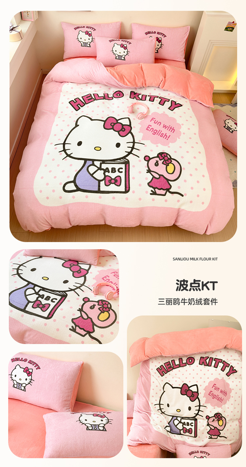 当前位置: 91家纺网 > 商品网购 > 床品套件 > 四件套 > 牛奶绒四件套 > 孩子王家纺 2024新款正版授权三丽鸥库洛米大版卡通学生宿舍双面加厚牛奶绒系列四件套--提供买家秀 波点kt