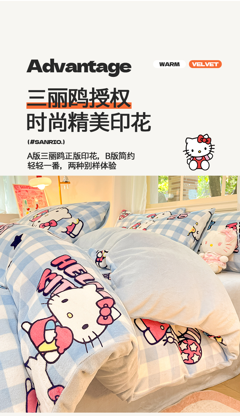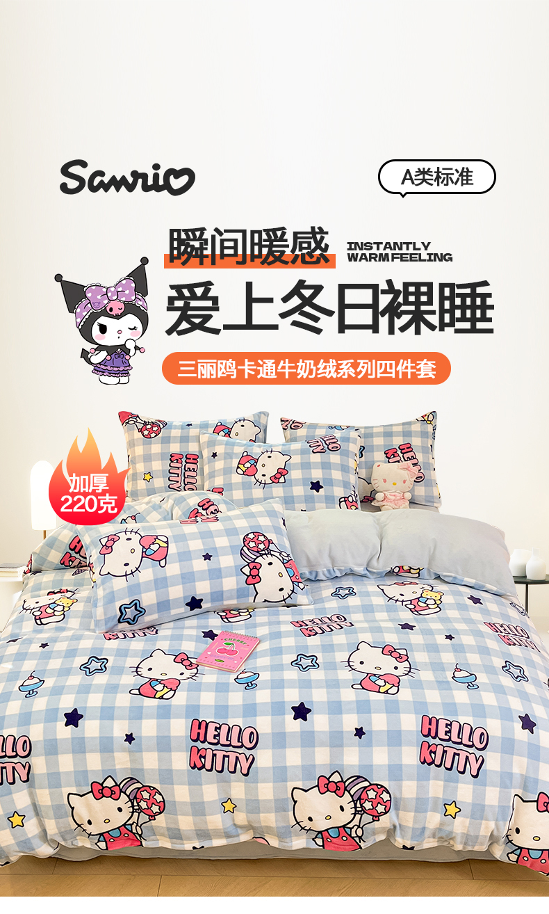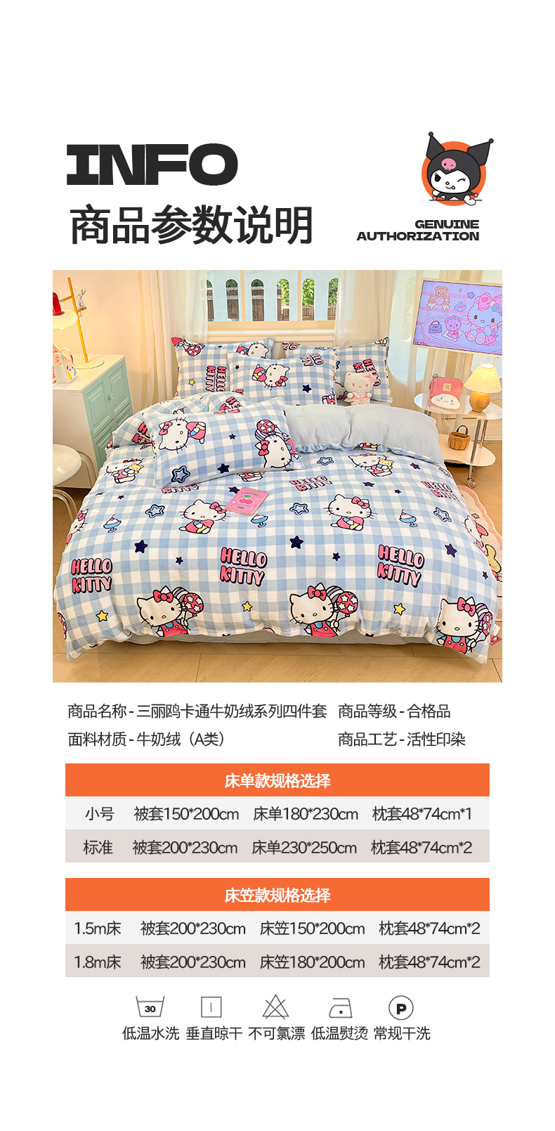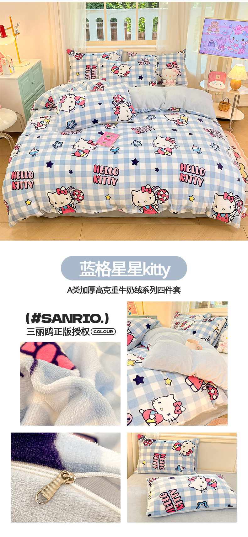 当前位置: 91家纺网 > 商品网购 > 床品套件 > 四件套 > 牛奶绒四件套 > 2024新品正版三丽鸥授权卡通加厚高克重牛奶绒系列四件套 绒三丽鸥-蓝格星星kitty