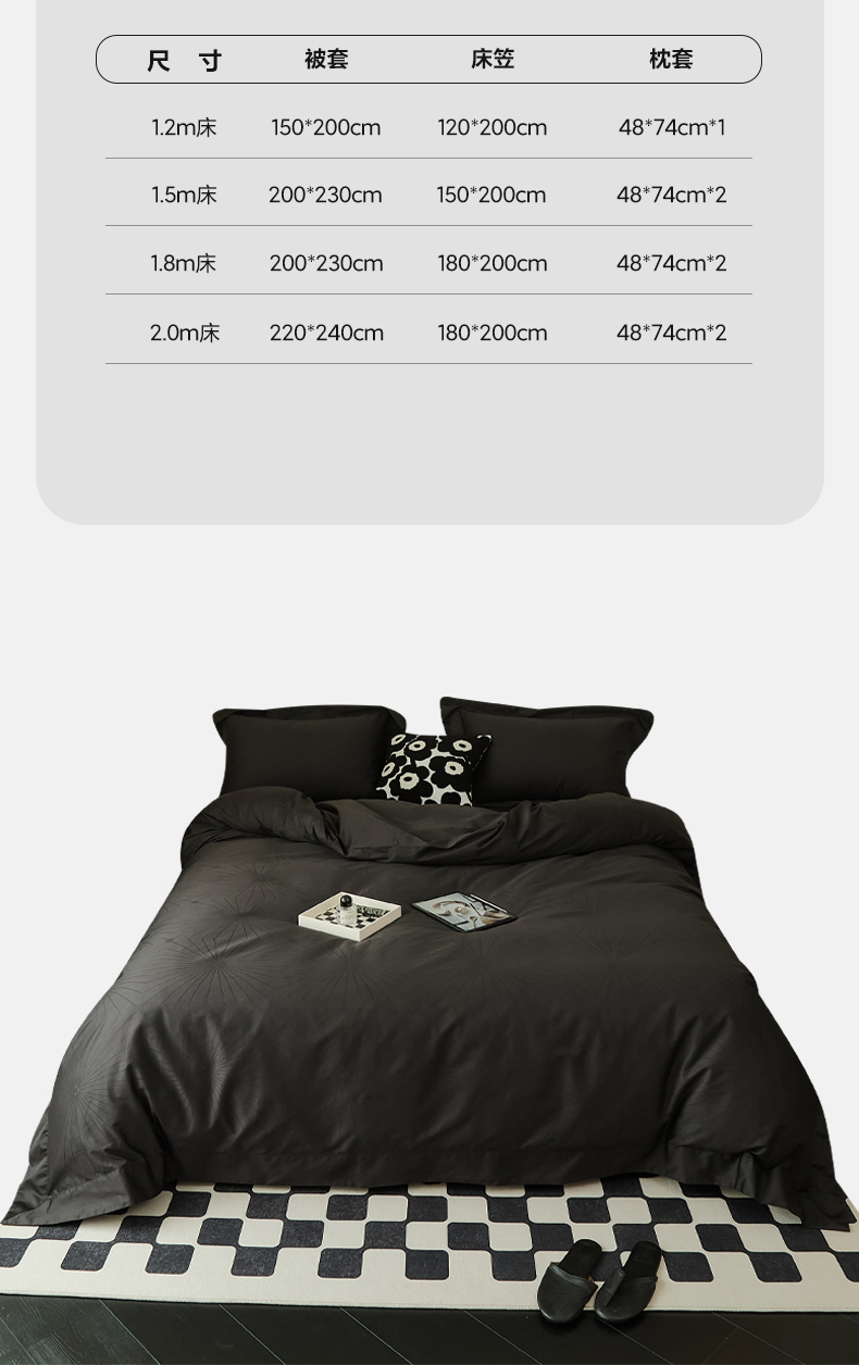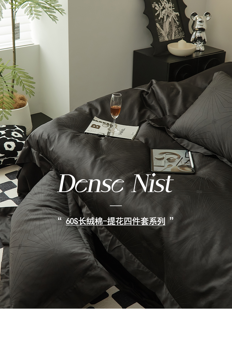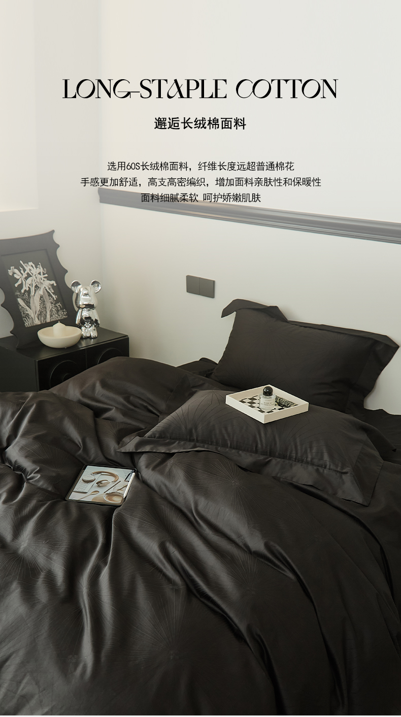 当前位置: 91家纺网 > 商品网购 > 床品套件 > 四件套 > 长绒棉四件套 > 2024新款60支长绒棉提花四件套--漫时光系列(英文版) 漫时光-神秘灰