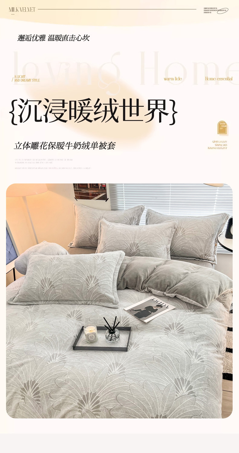商品名称:2024新款A类高克重立体浮雕牛奶绒加厚保暖系列-被套 清雅灰
