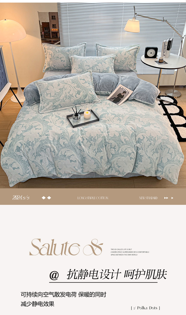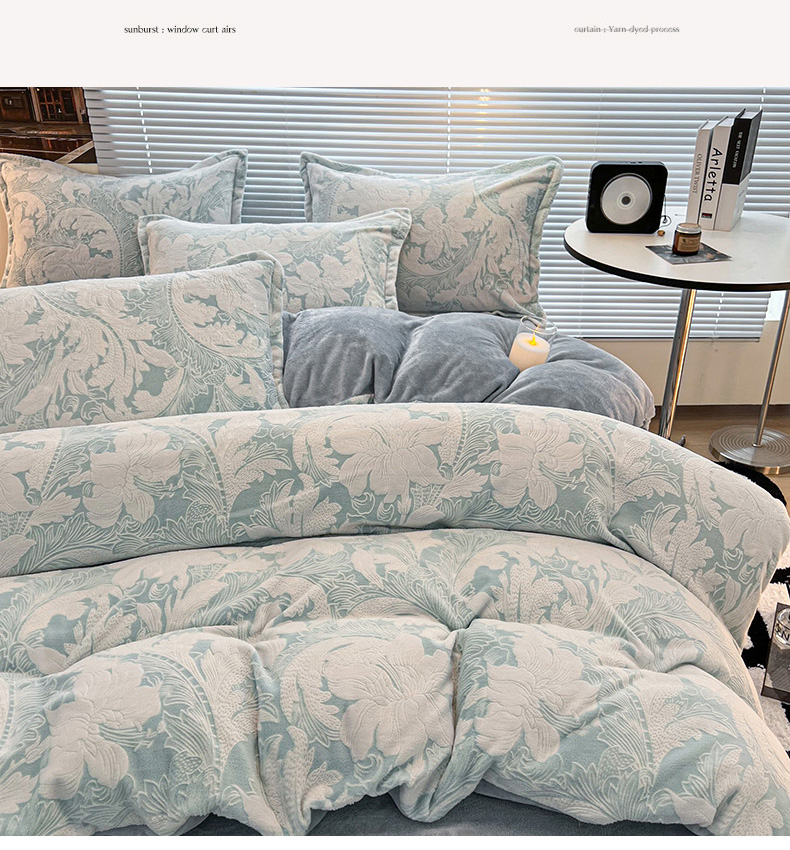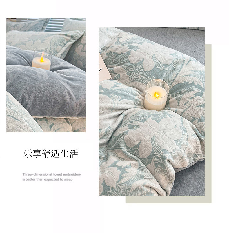 (总)倾慕 2025新款兔绒立体雕花加厚保暖系列四件套,爱娜玉,春絮蓝,春絮绿,伊宁玉,伊宁紫,优朵粉,珍妮粉,珍妮湖蓝