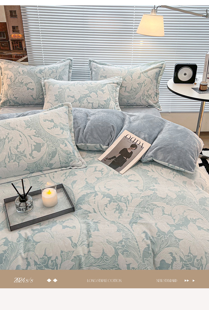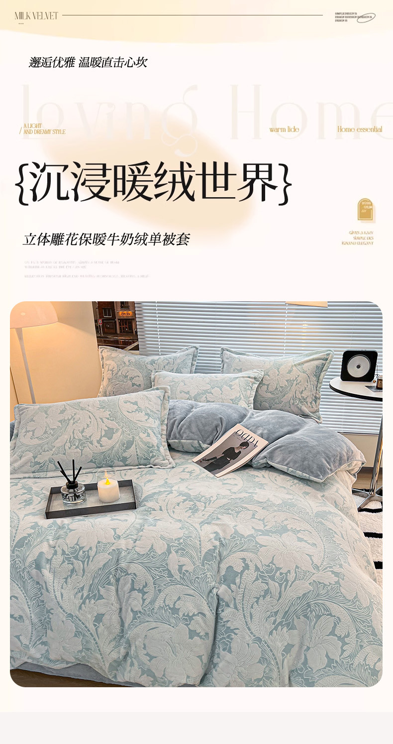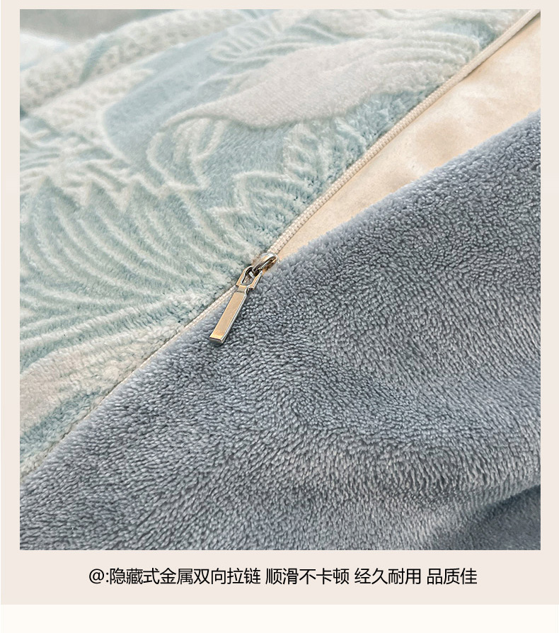 商品名称:2024新款A类高克重立体浮雕牛奶绒加厚保暖系列-被套 叶朦胧蓝
