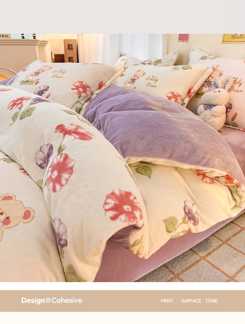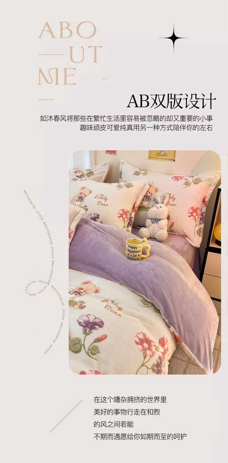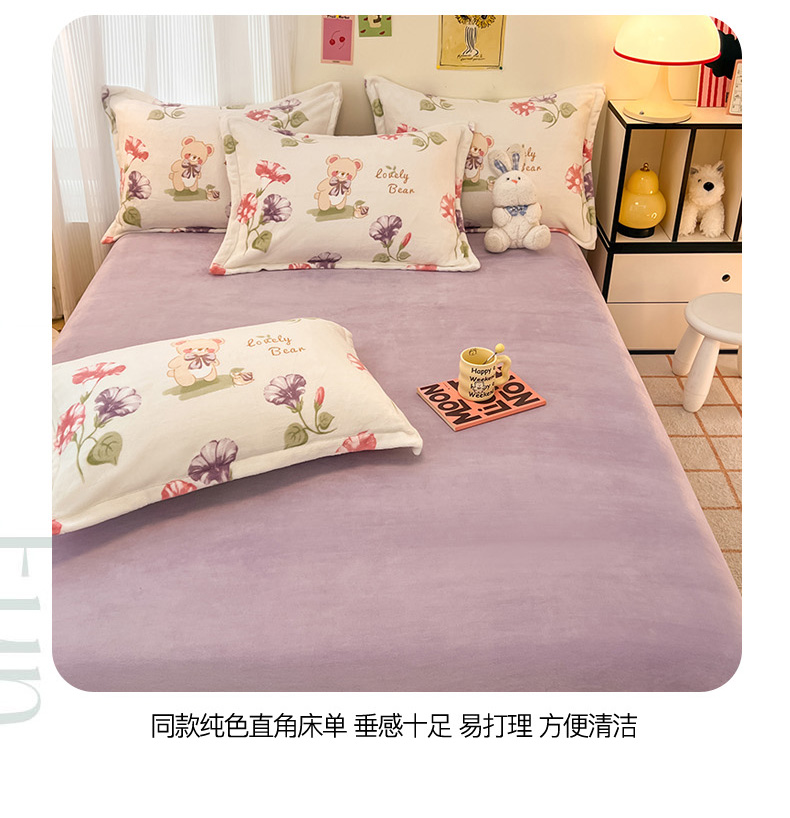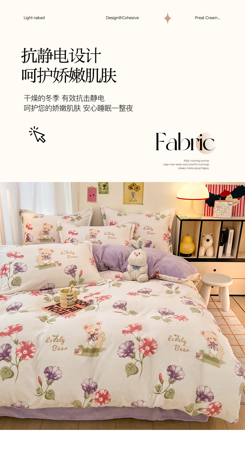 当前位置: 91家纺网 > 商品网购 > 床品套件 > 四件套 > 牛奶绒四件套 > 2024新款A类高克重时尚风牛奶绒加厚保暖系列套件单品-四件套 牵牛花小熊