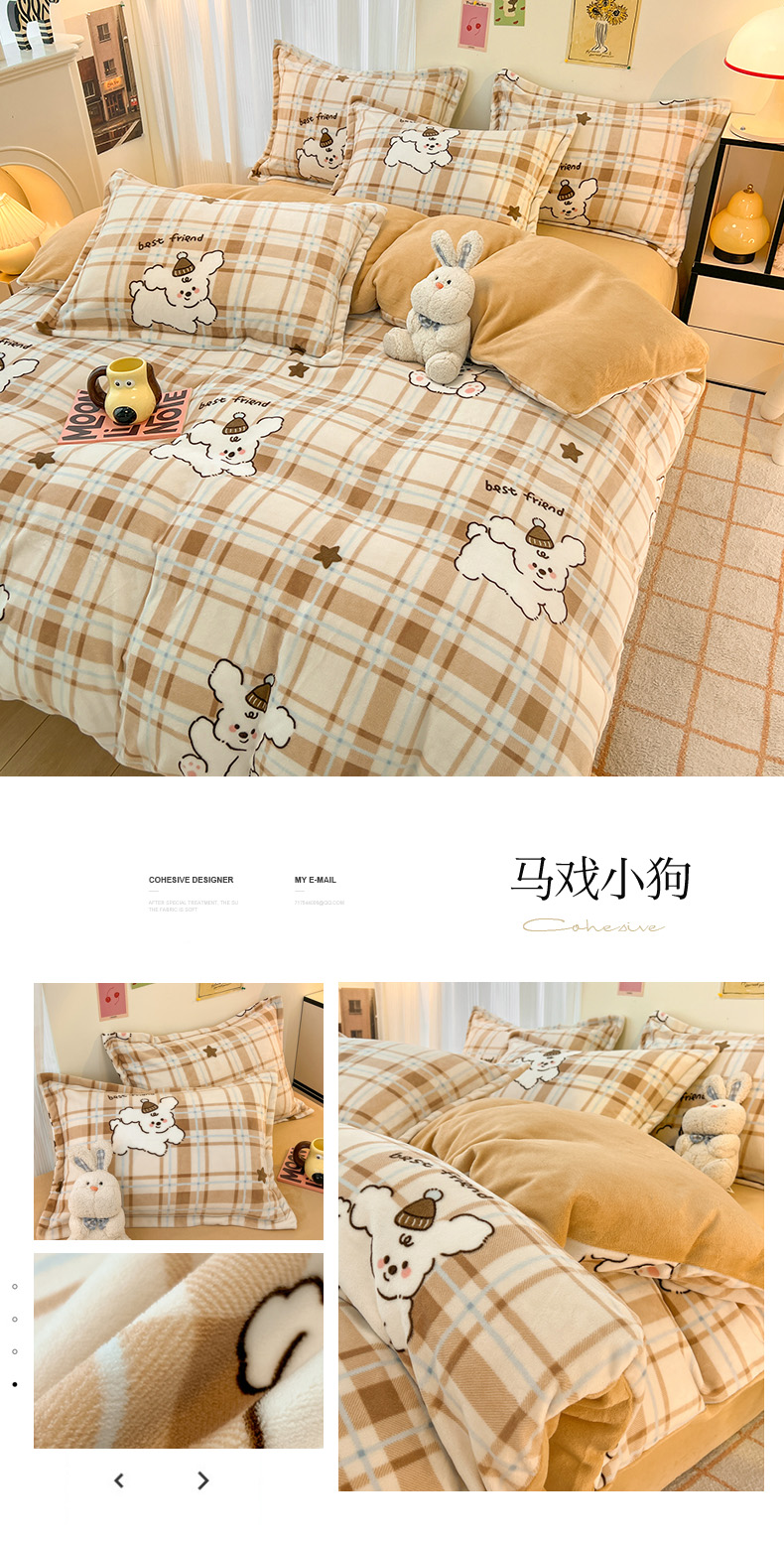 (总)倾慕家纺 2025新款卡通毛巾绣加厚保暖牛奶绒四件套,爱心女孩,咖啡小狗,猫咪熊兔,迷你小车,圣诞树熊,音乐企鹅