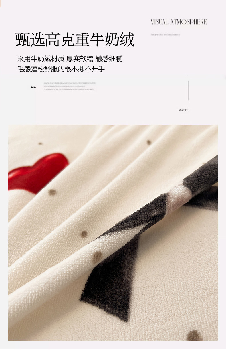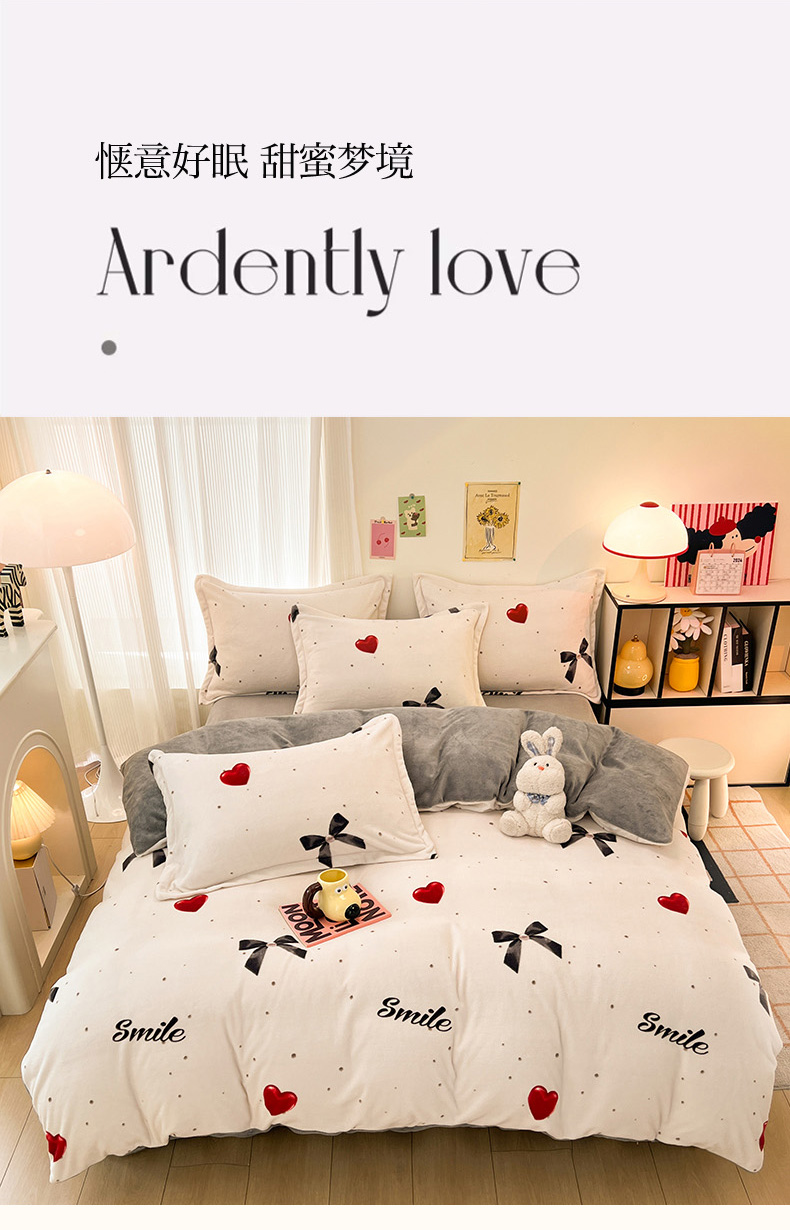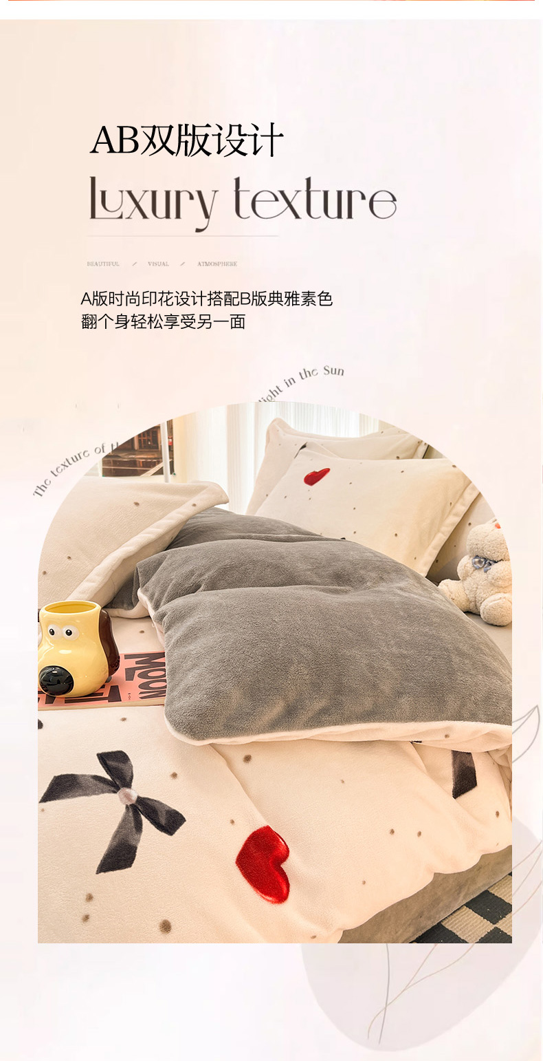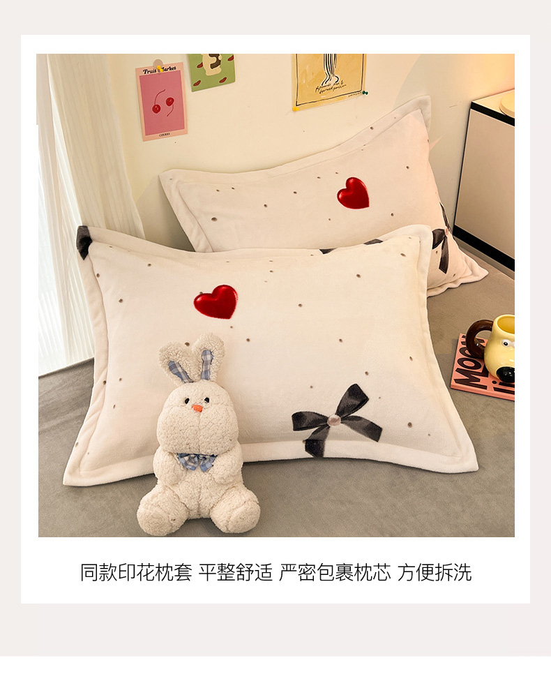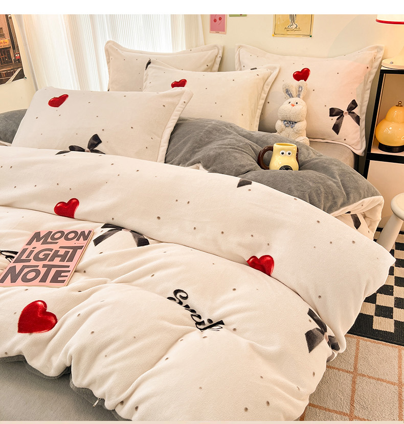 2024新款A类高克重时尚风牛奶绒加厚保暖系列套件单品-被套 爱心蝴蝶结
