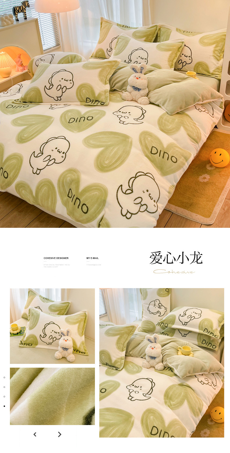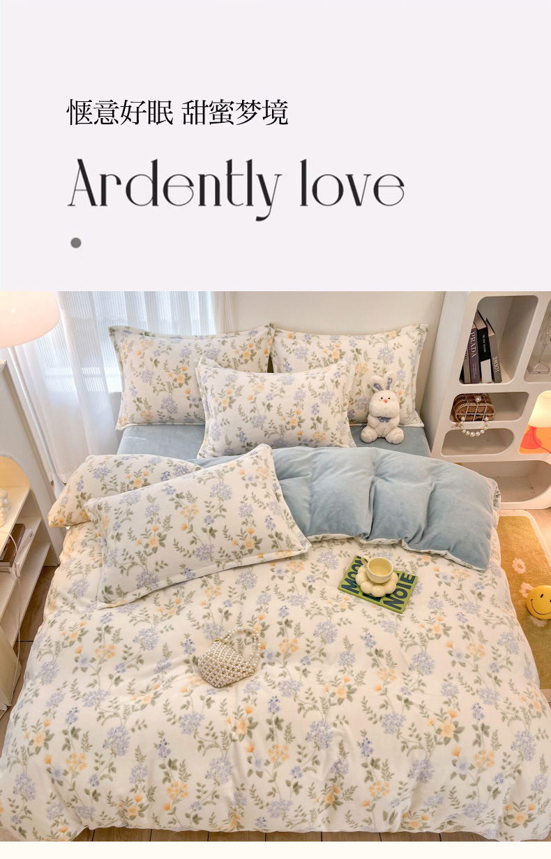 (总)倾慕家纺 2025新款卡通毛巾绣加厚保暖牛奶绒四件套,爱心女孩,咖啡小狗,猫咪熊兔,迷你小车,圣诞树熊,音乐企鹅