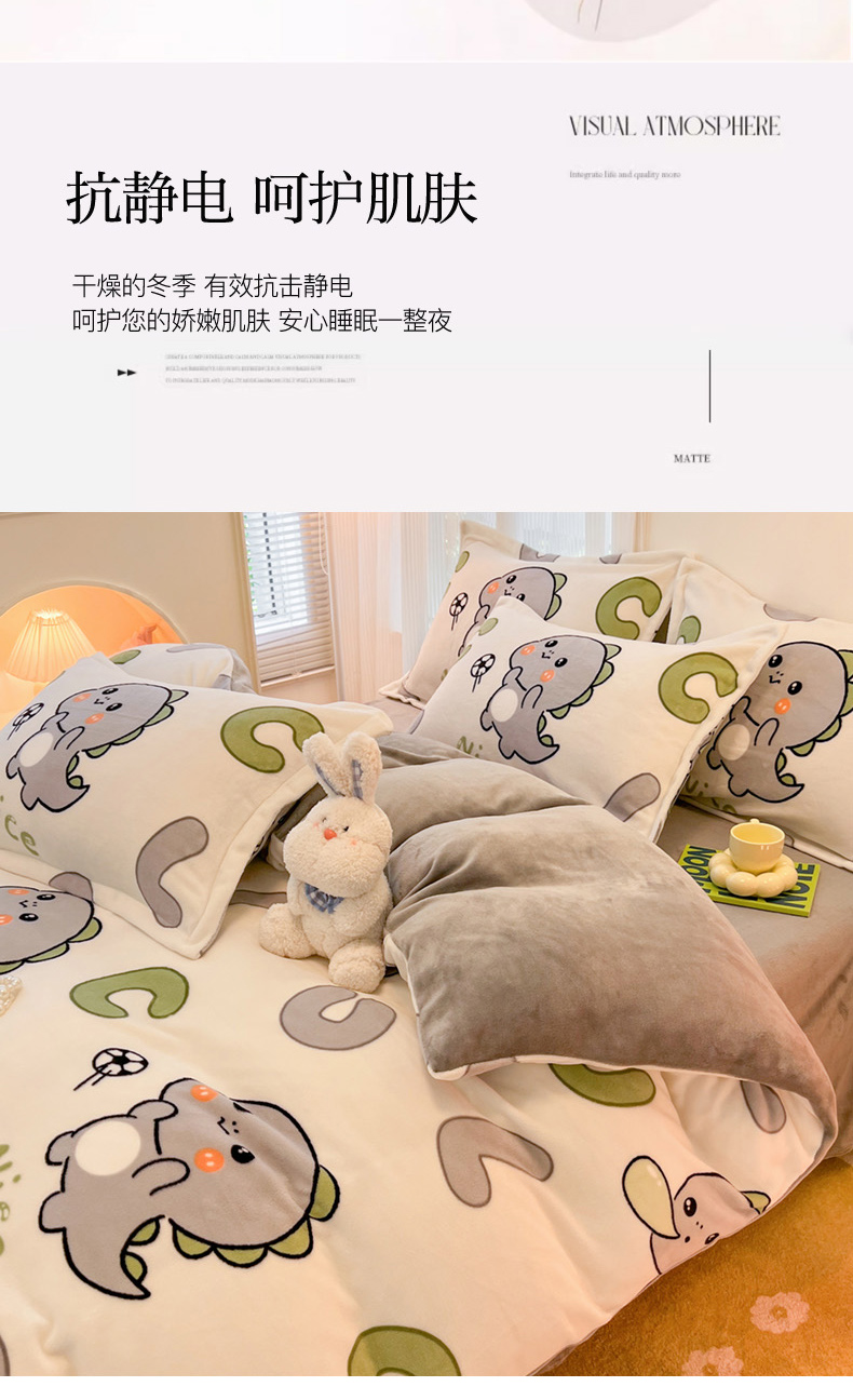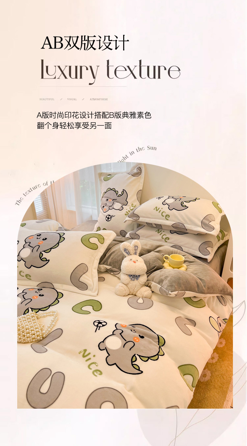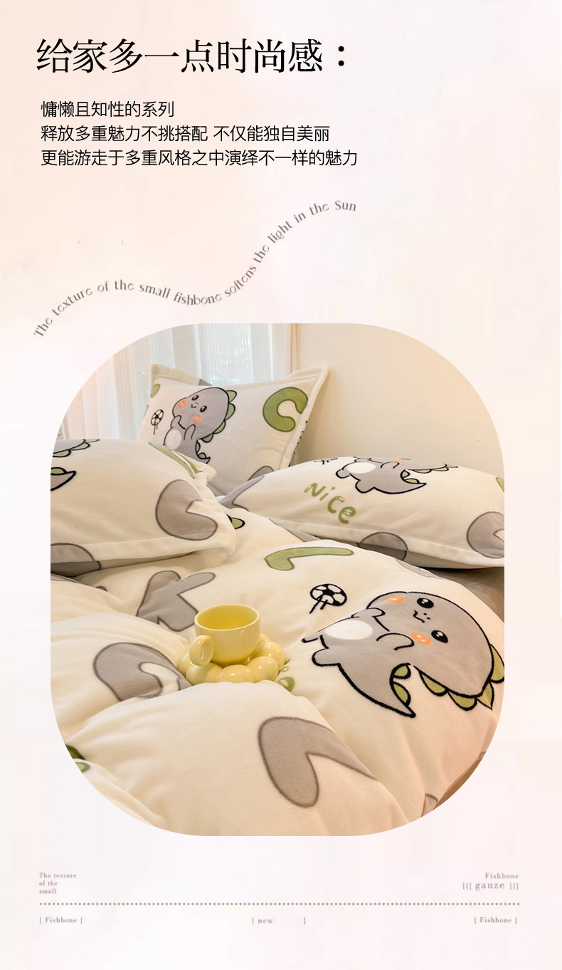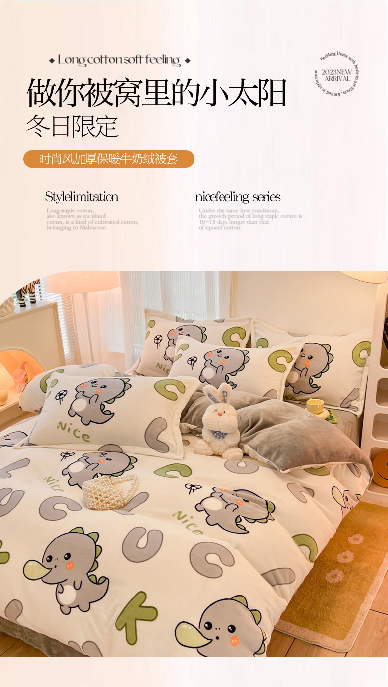 商品名称:2024新款A类高克重时尚风牛奶绒加厚保暖系列套件单品-被套 字母恐龙