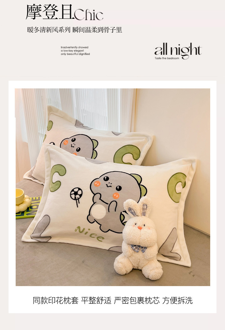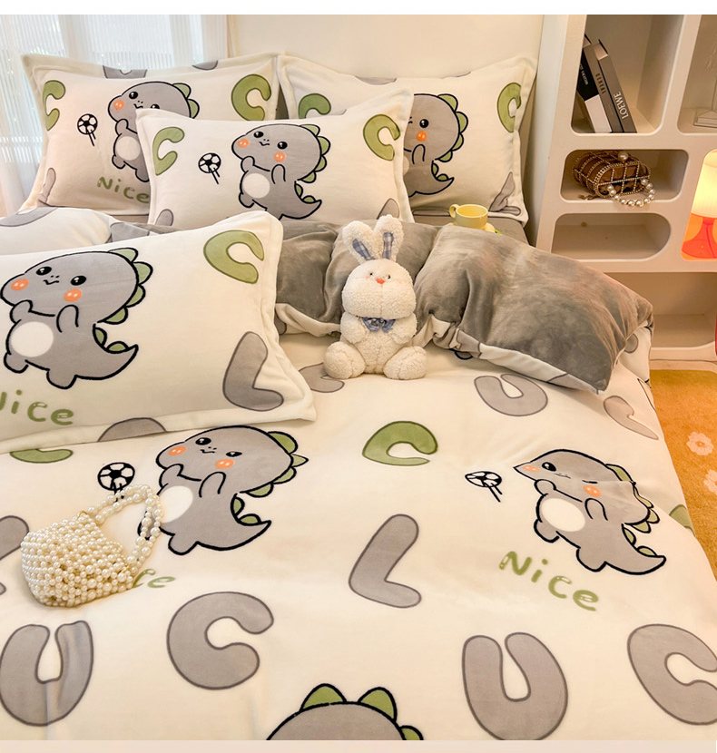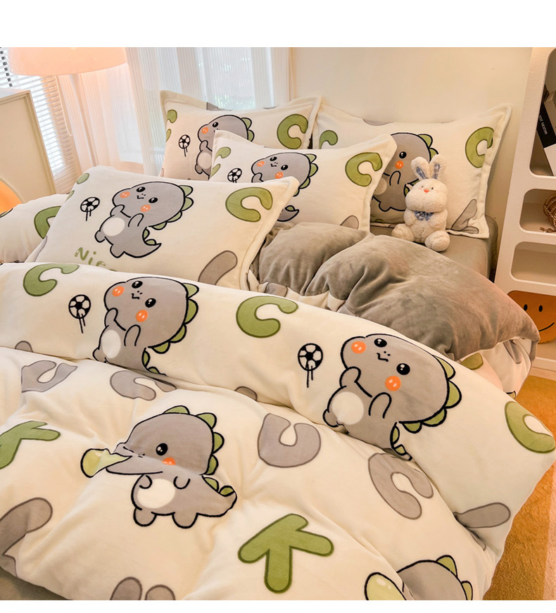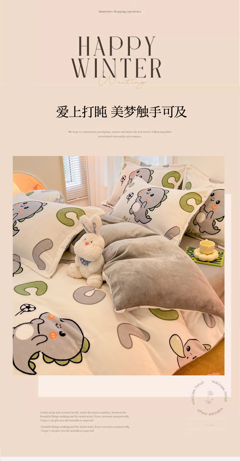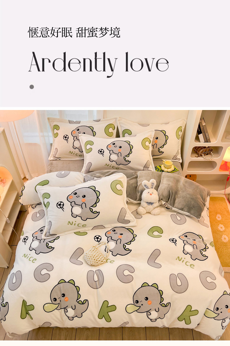 商品名称:2024新款A类高克重时尚风牛奶绒加厚保暖系列套件单品-被套 字母恐龙