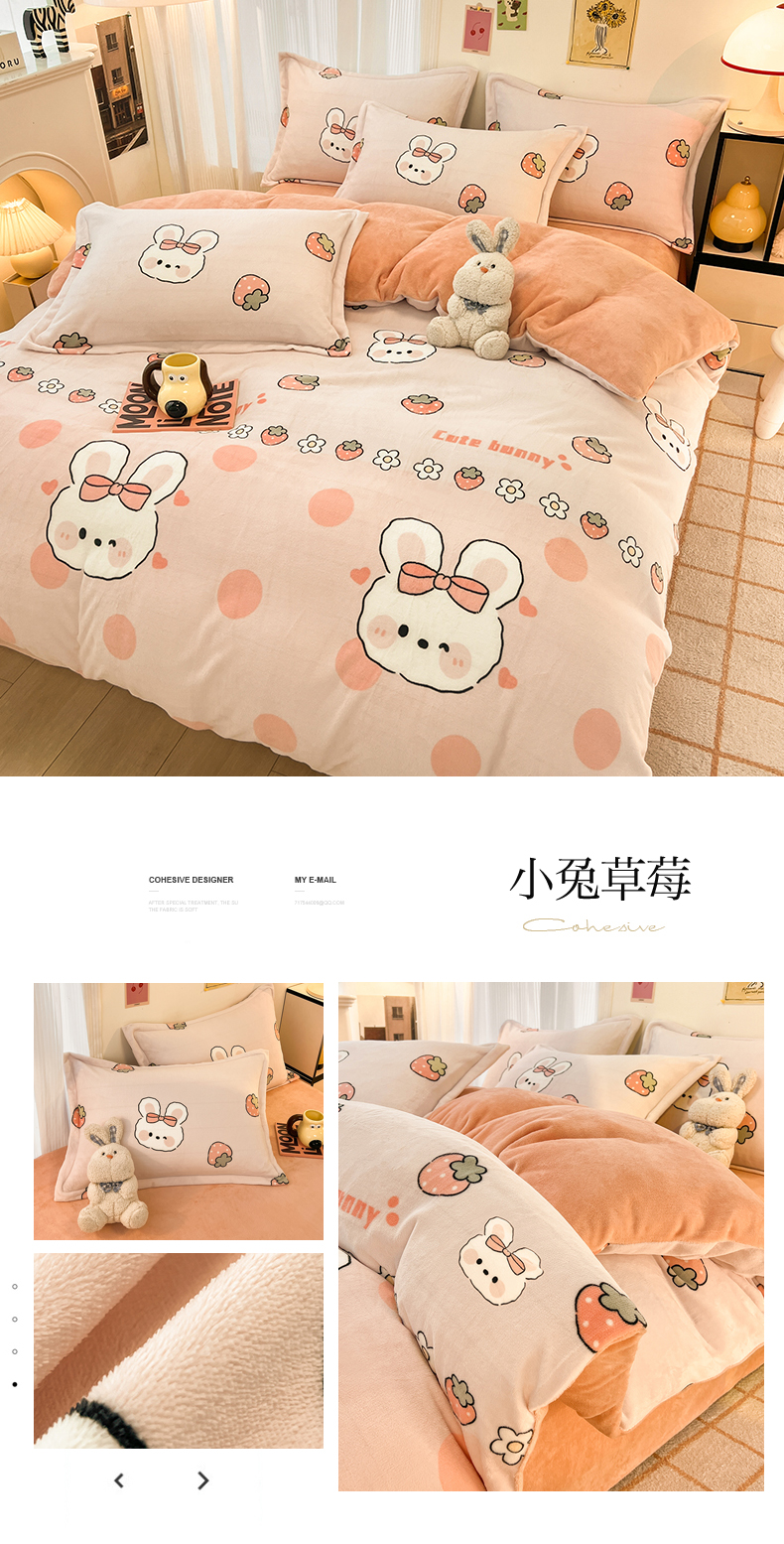 (总)倾慕家纺 2025新款卡通毛巾绣加厚保暖牛奶绒四件套,爱心女孩,咖啡小狗,猫咪熊兔,迷你小车,圣诞树熊,音乐企鹅