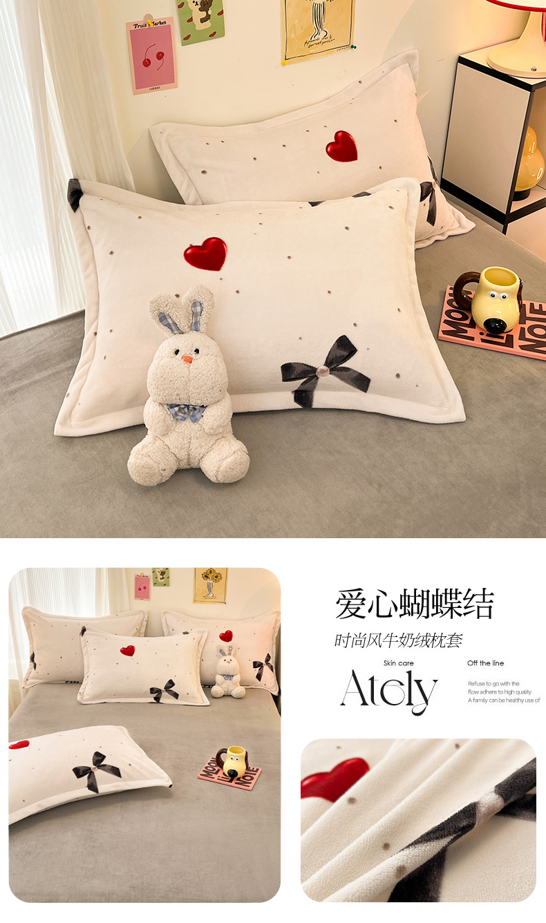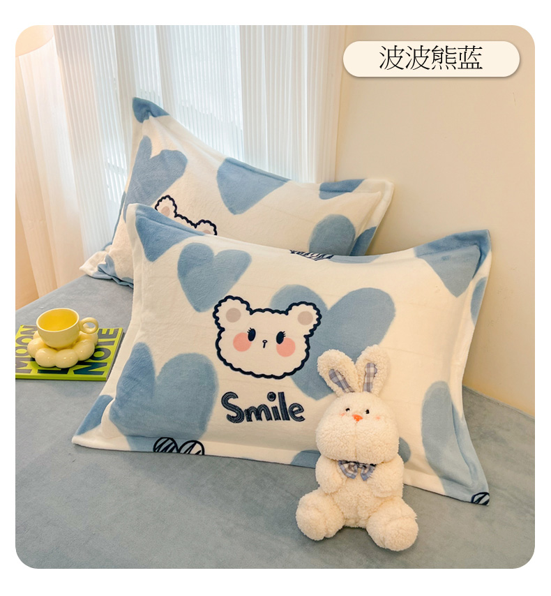 2024新款A类高克重时尚风牛奶绒加厚保暖系列--枕套 小兔草莓