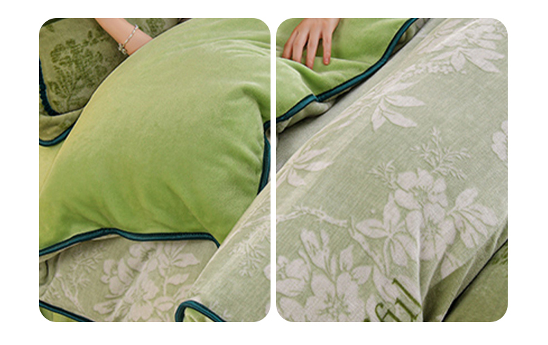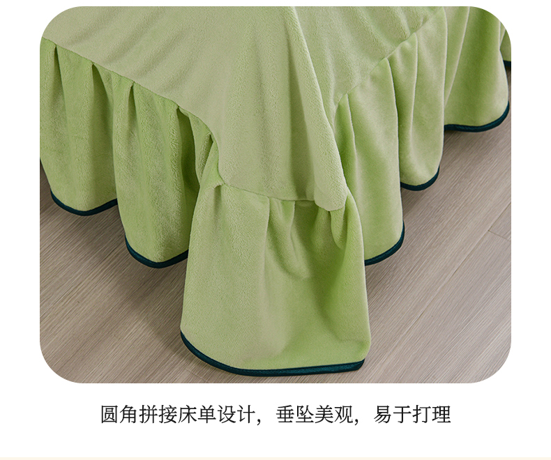 赫本家纺 2025新品8-9斤爆品牛奶绒四件套床裙款金雕绒法莱绒四套件 熊猫乐园-绿,熊猫乐园-绿