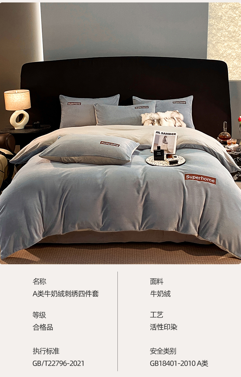当前位置: 91家纺网 > 商品网购 > 床品套件 > 四件套 > 牛奶绒四件套 > 笙意家纺 2025新款牛奶绒刺绣四件套-杰尼娅系列绒 杰尼亚-海清+山灰