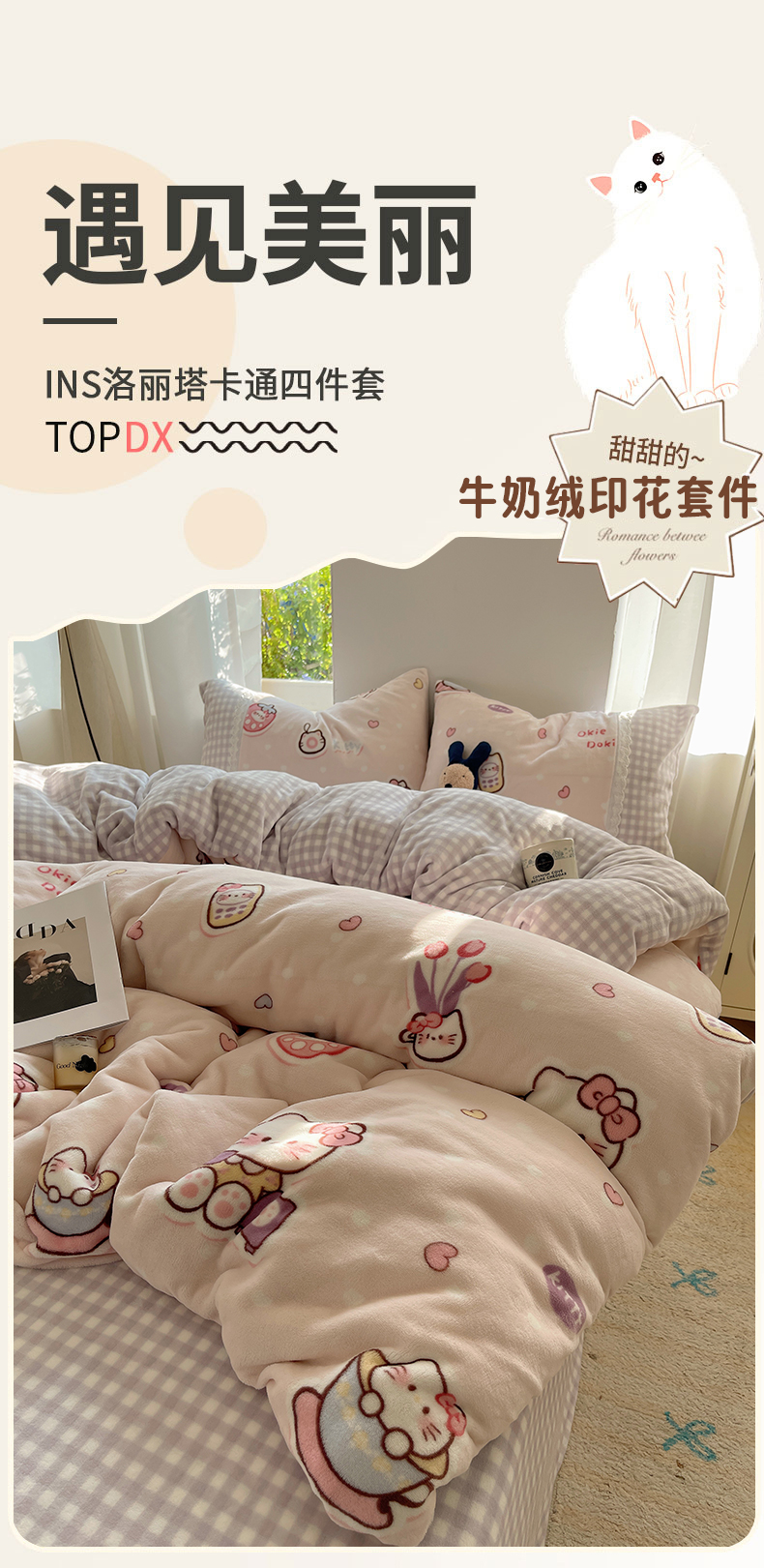 当前位置: 91家纺网 > 商品网购 > 床品套件 > 四件套 > 牛奶绒四件套 > 花漾家居 2024新款小红书ins风韩版棉质小花边牛奶绒四件套(提供买家秀) 洛丽塔