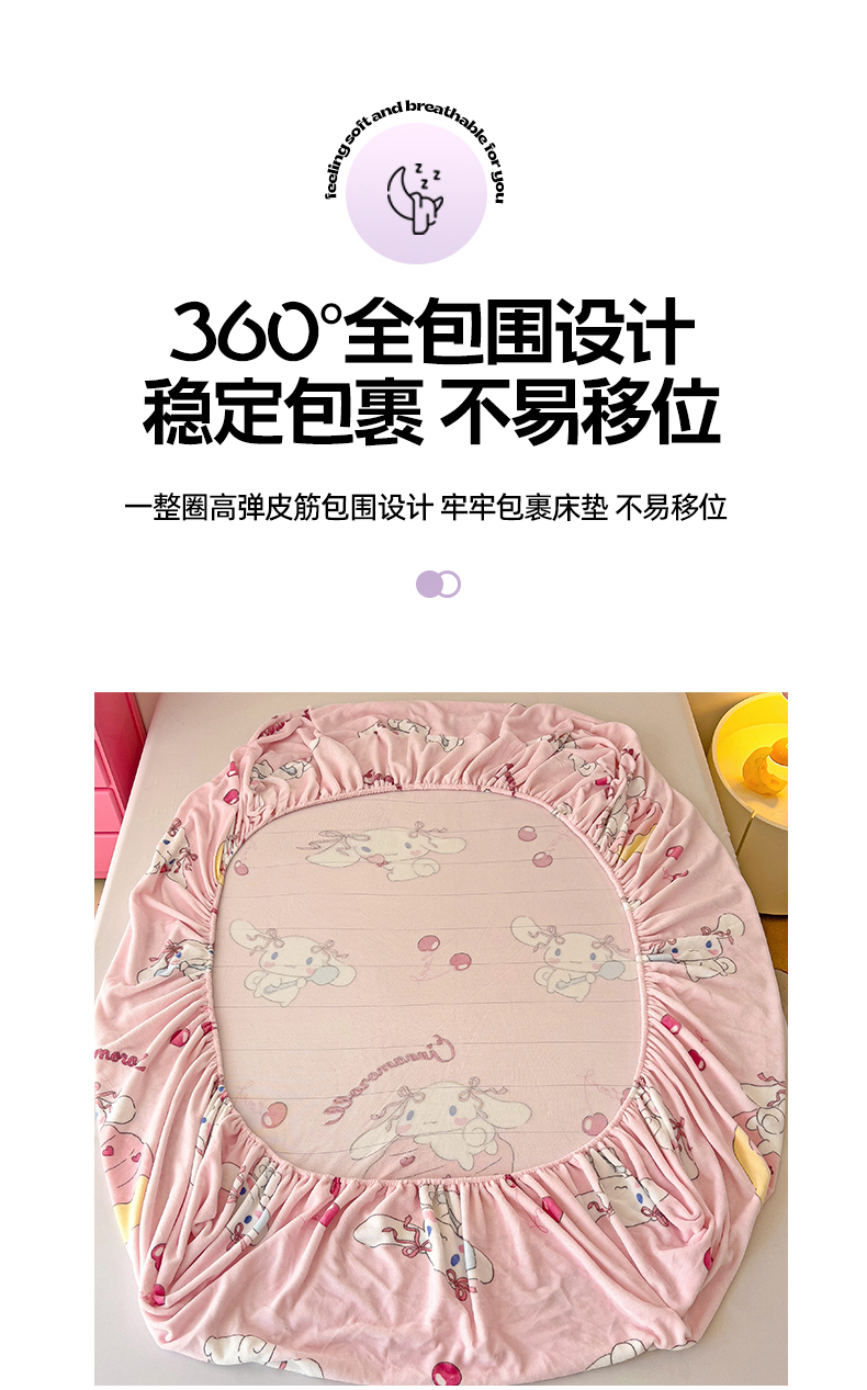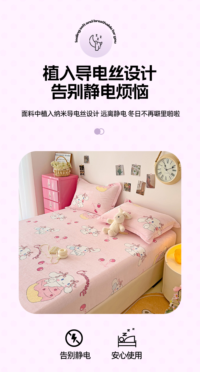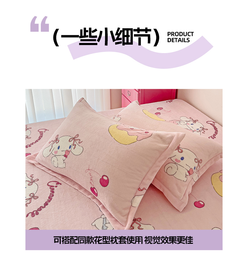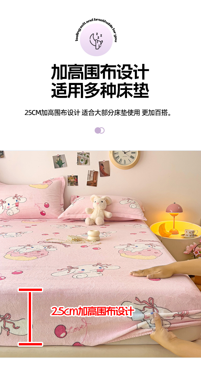 • 91家纺网 家纺一手货源 找家纺 KT猫直营店 2024新款三丽鸥正版授权库洛米牛奶绒单品床笠 可爱玉桂狗-笠