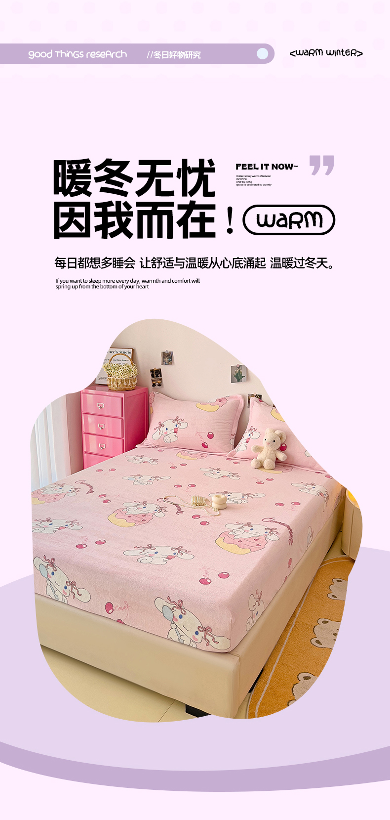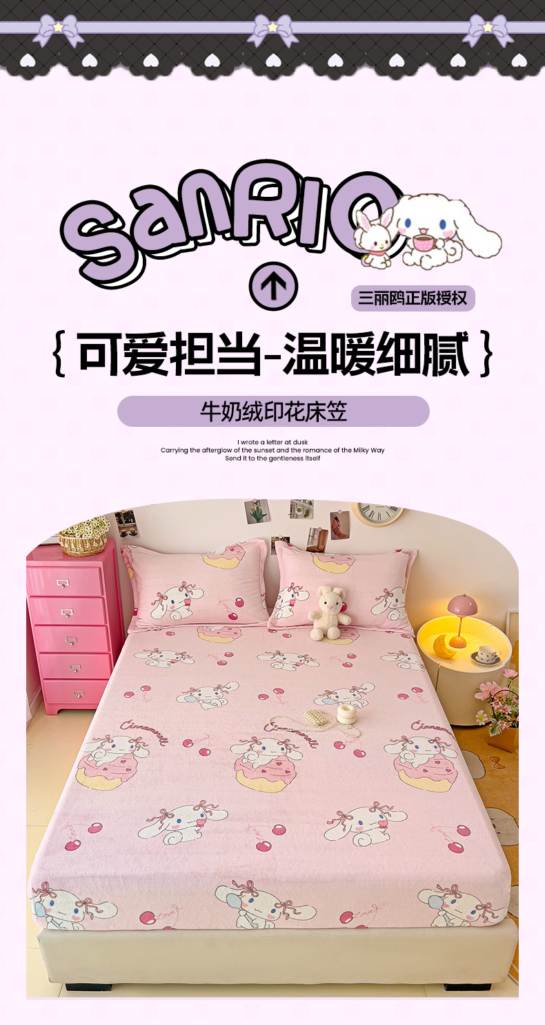 KT猫直营店 2024新款三丽鸥正版授权库洛米牛奶绒单品床笠 可爱玉桂狗-笠