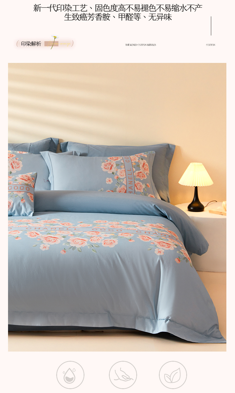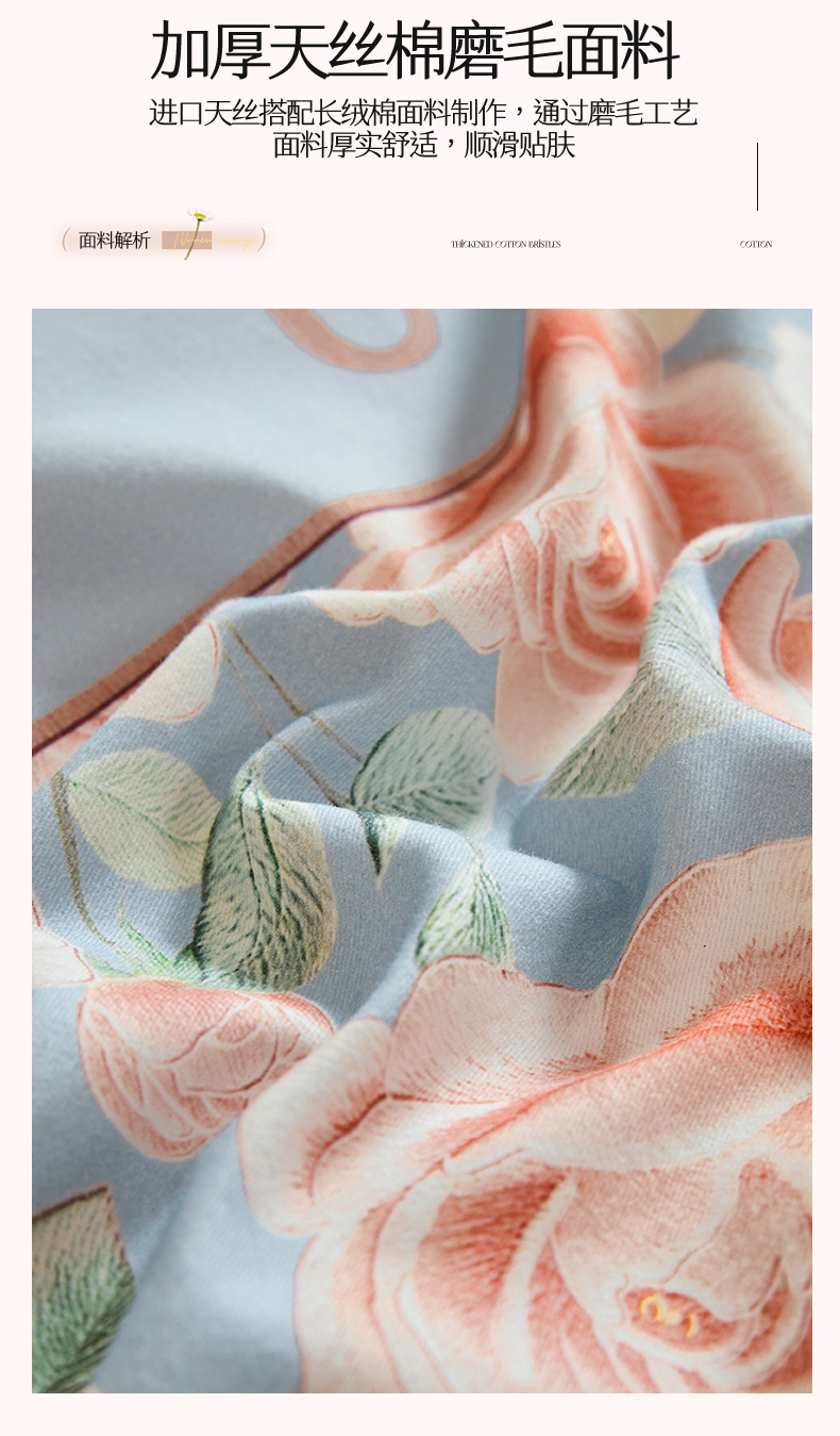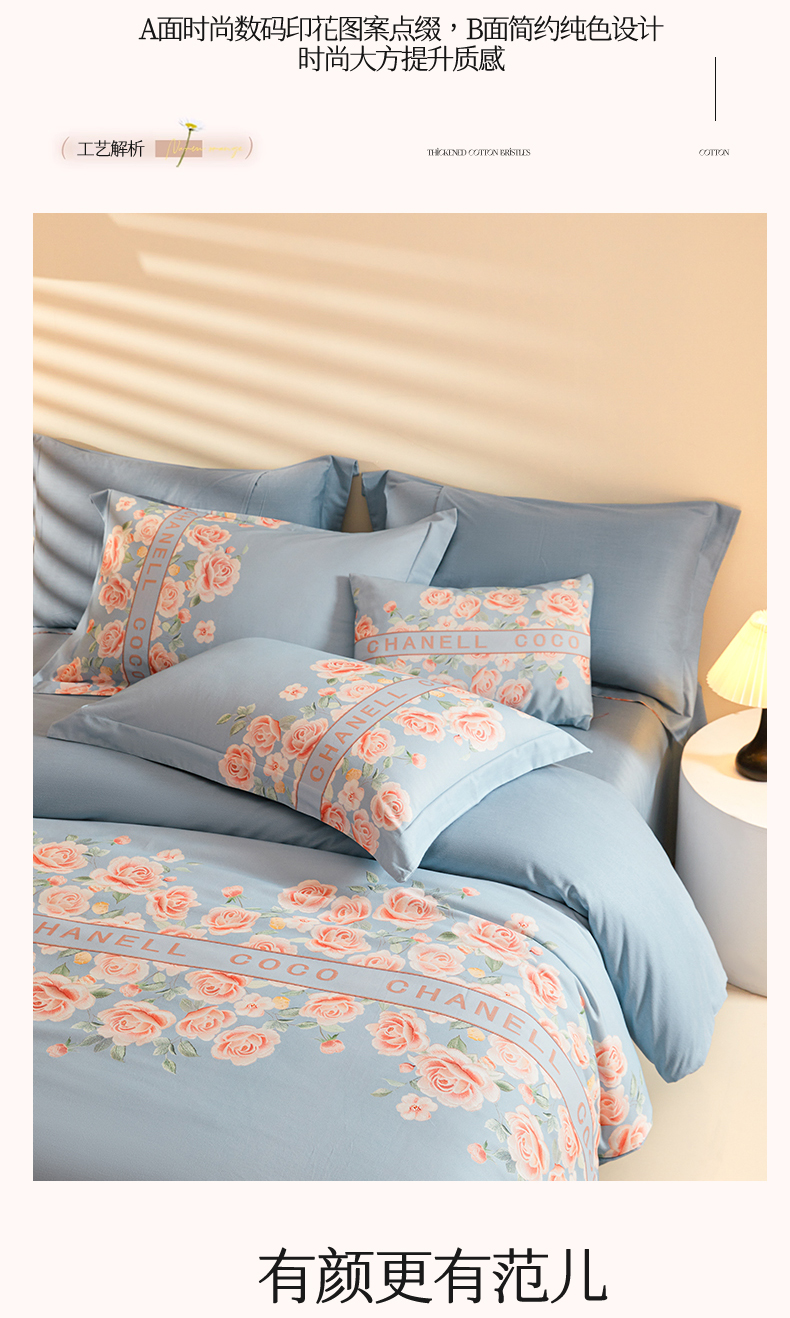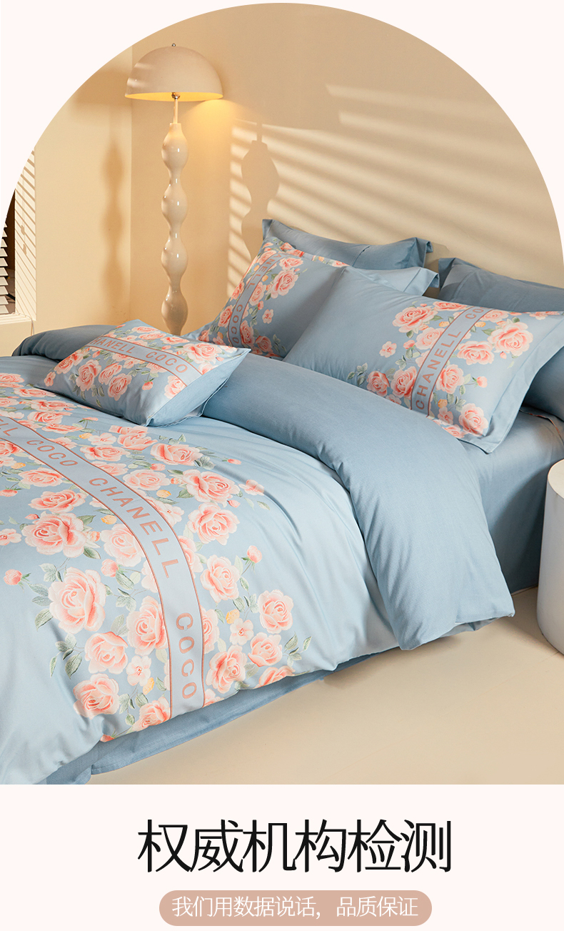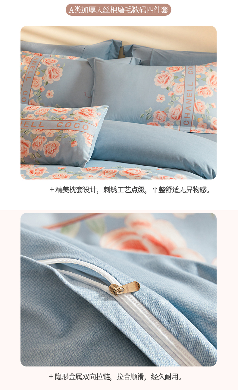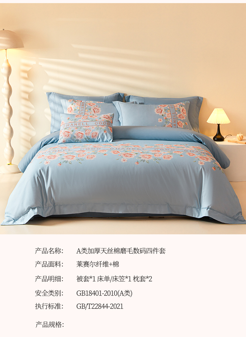 商品名称:2024新秋冬A类加厚磨毛天丝棉数码四件套-花芙系列 花芙TM-天空蓝海