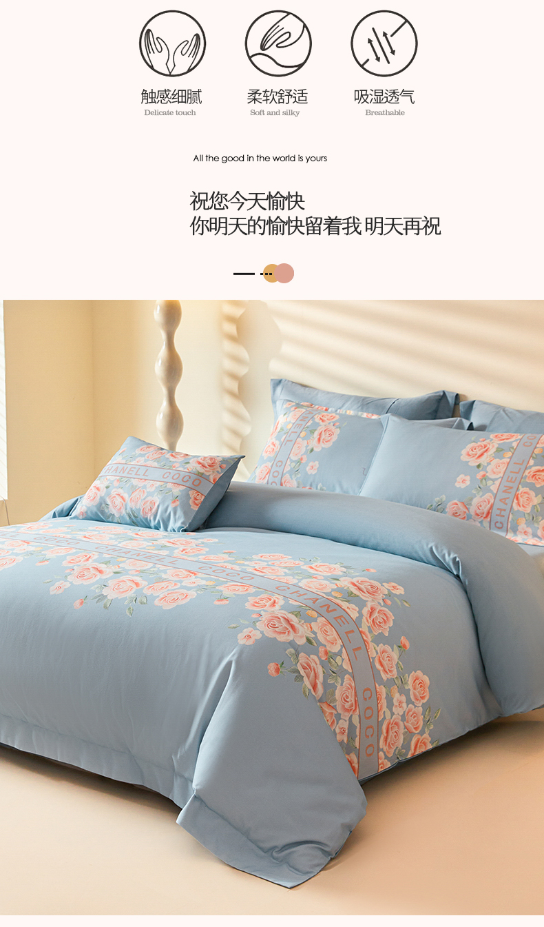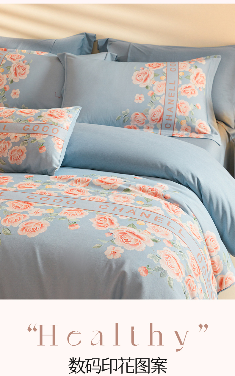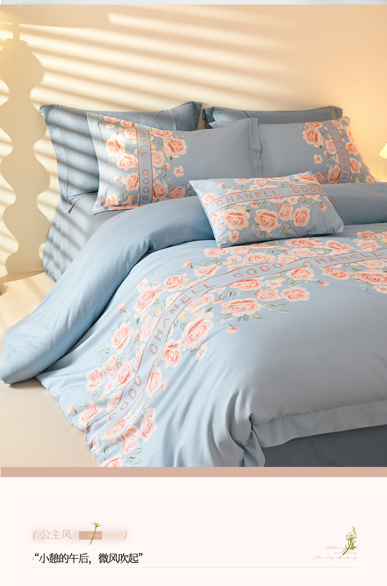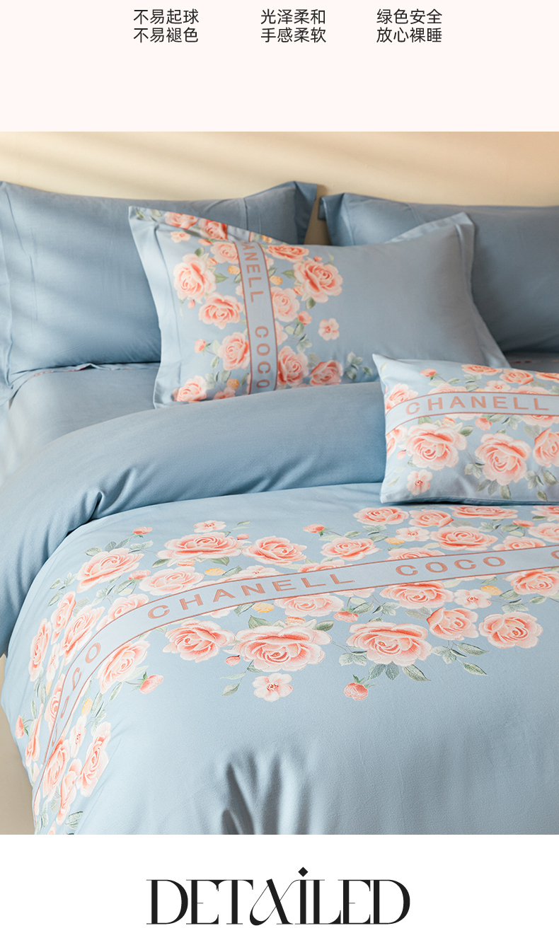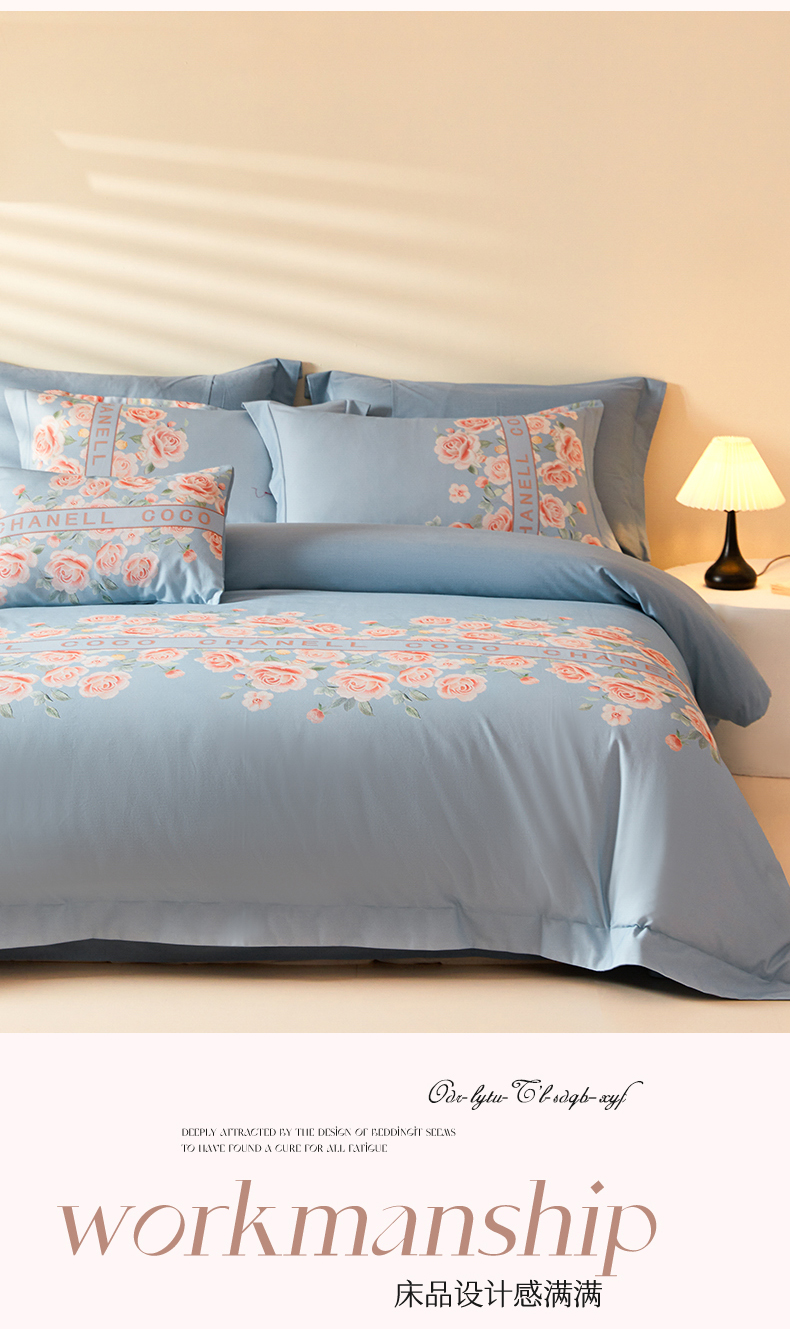 商品名称:2024新秋冬A类加厚磨毛天丝棉数码四件套-花芙系列 花芙TM-天空蓝海