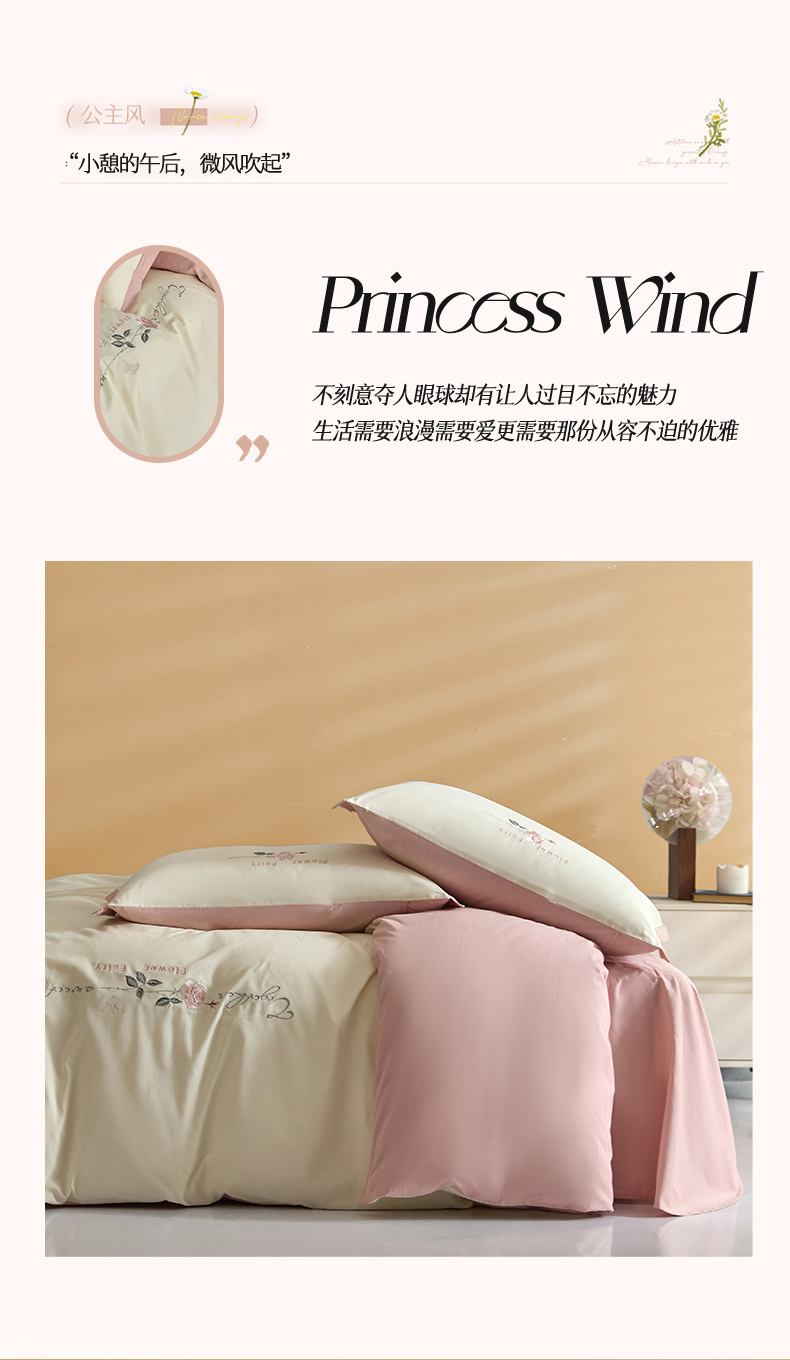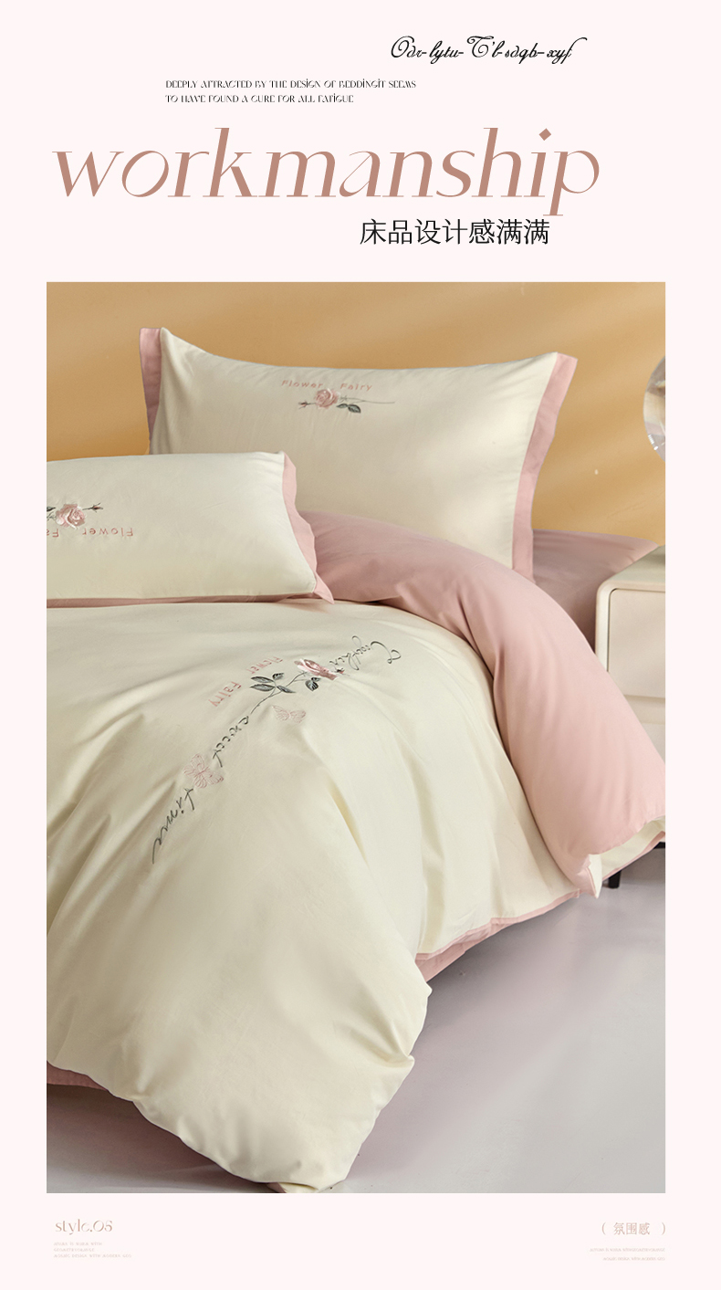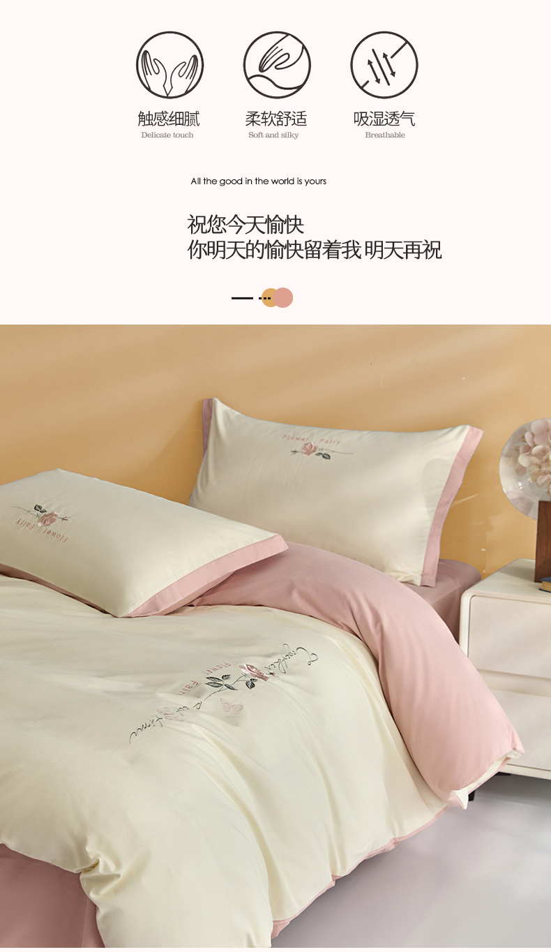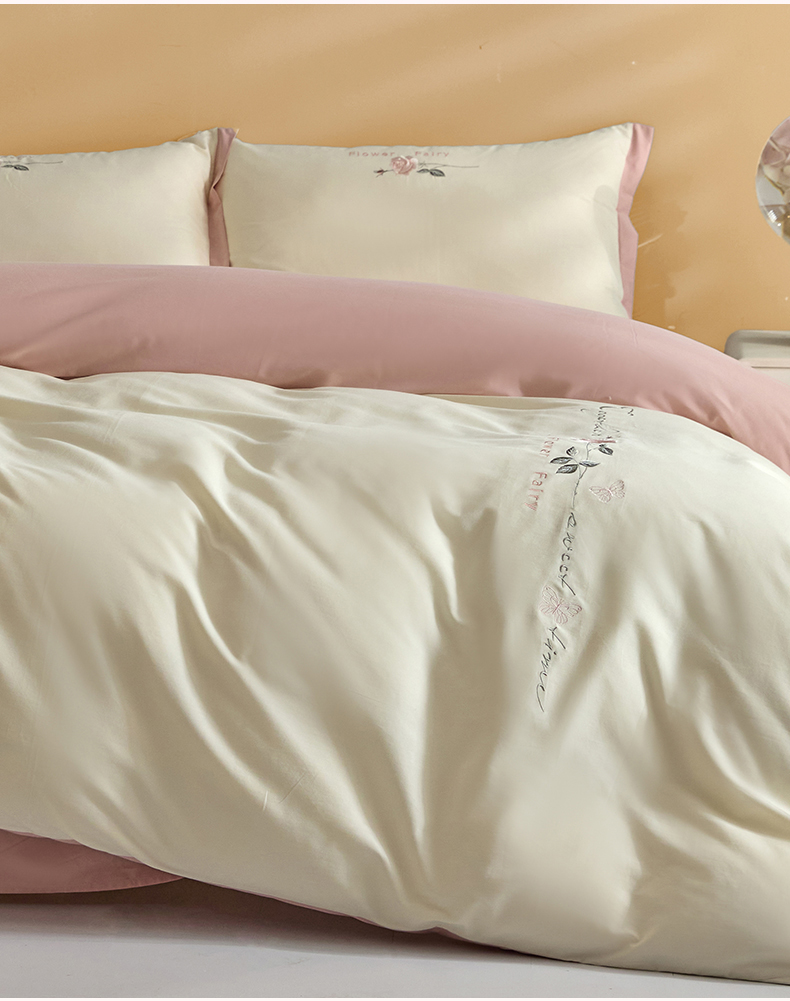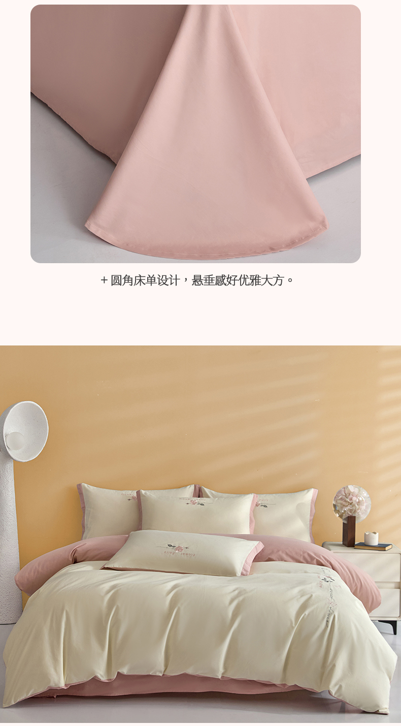 新保暖-秋冬A类加厚全棉磨毛刺绣四件套-玫瑰花香系列(礼盒包装) 玫瑰-奶白+蔷薇粉
