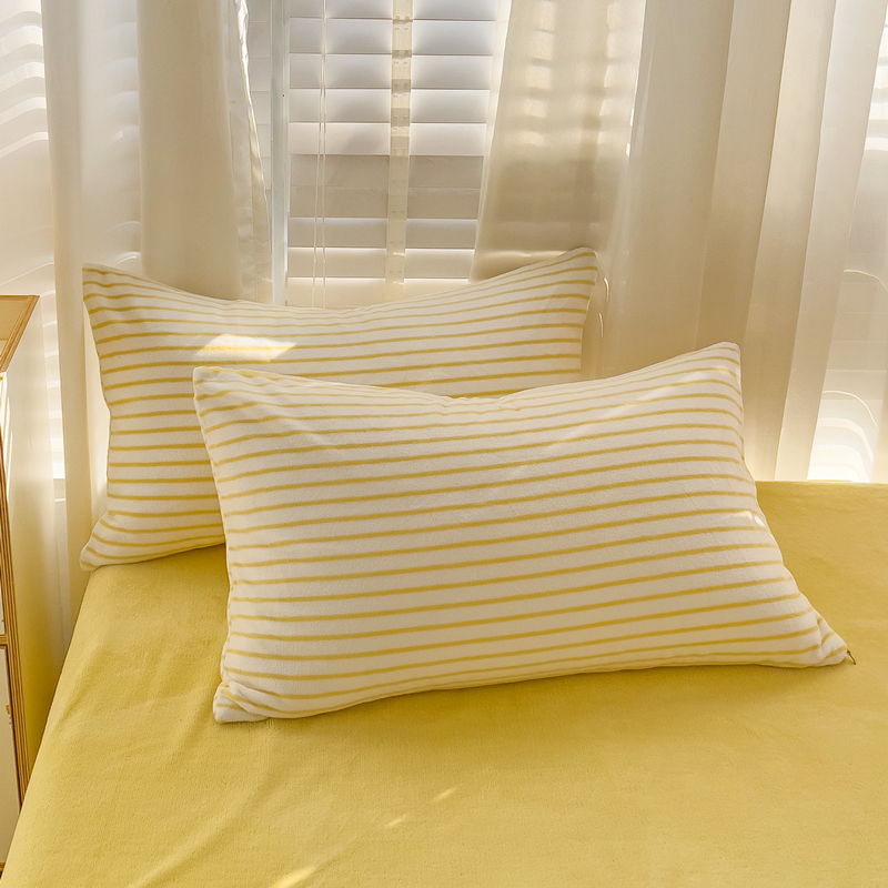商品名称:丽涵家纺 2024秋冬新品多巴胺博主风牛奶绒条纹枕套 嫩鹅黄条