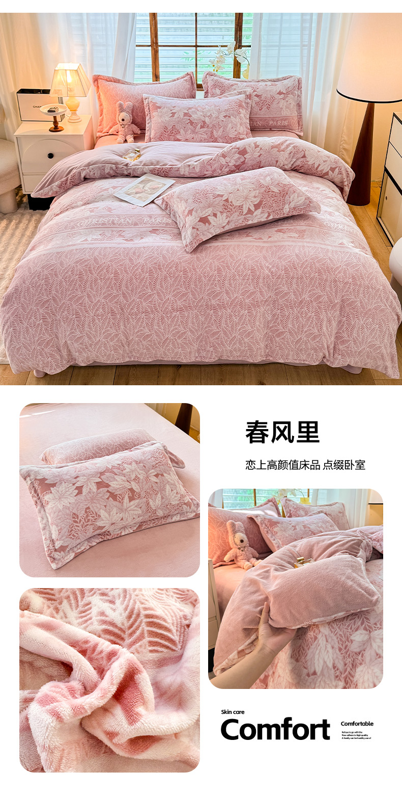 当前位置: 91家纺网 > 商品网购 > 床品套件 > 四件套 > 牛奶绒四件套 > 2025新款A类高克重牛奶绒着色烂花绒系列-四件套 春风里
