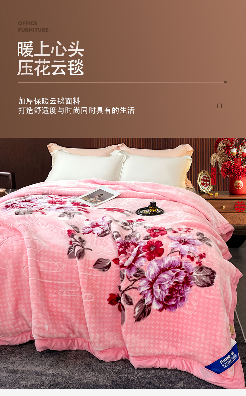 凯轩毛毛毯毯子网销专供 2024新款花开盛世5D婚庆云毛毯毯子 花开盛世-粉色