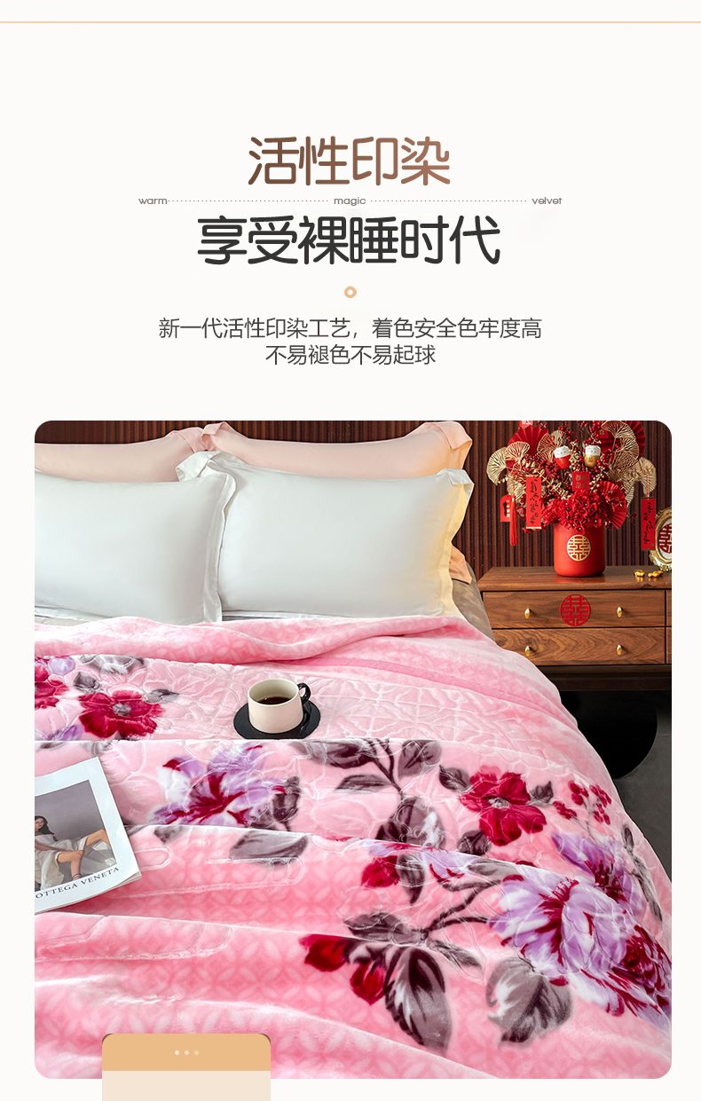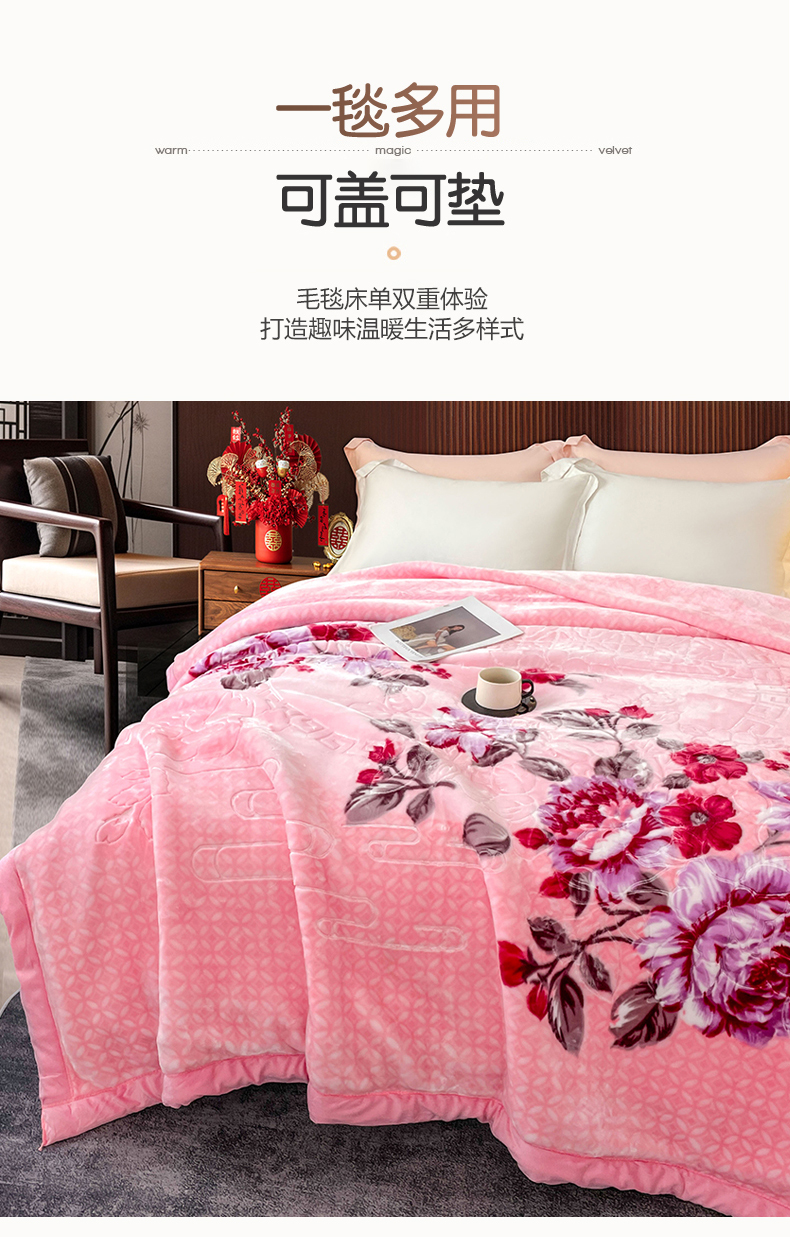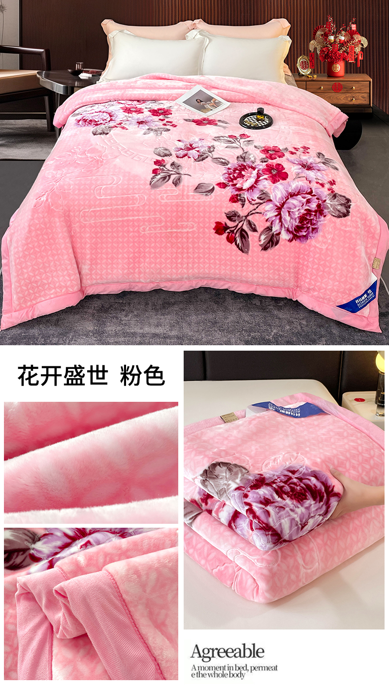 商品名称:凯轩毛毛毯毯子网销专供 2024新款花开盛世5D婚庆云毛毯毯子 花开盛世-粉色