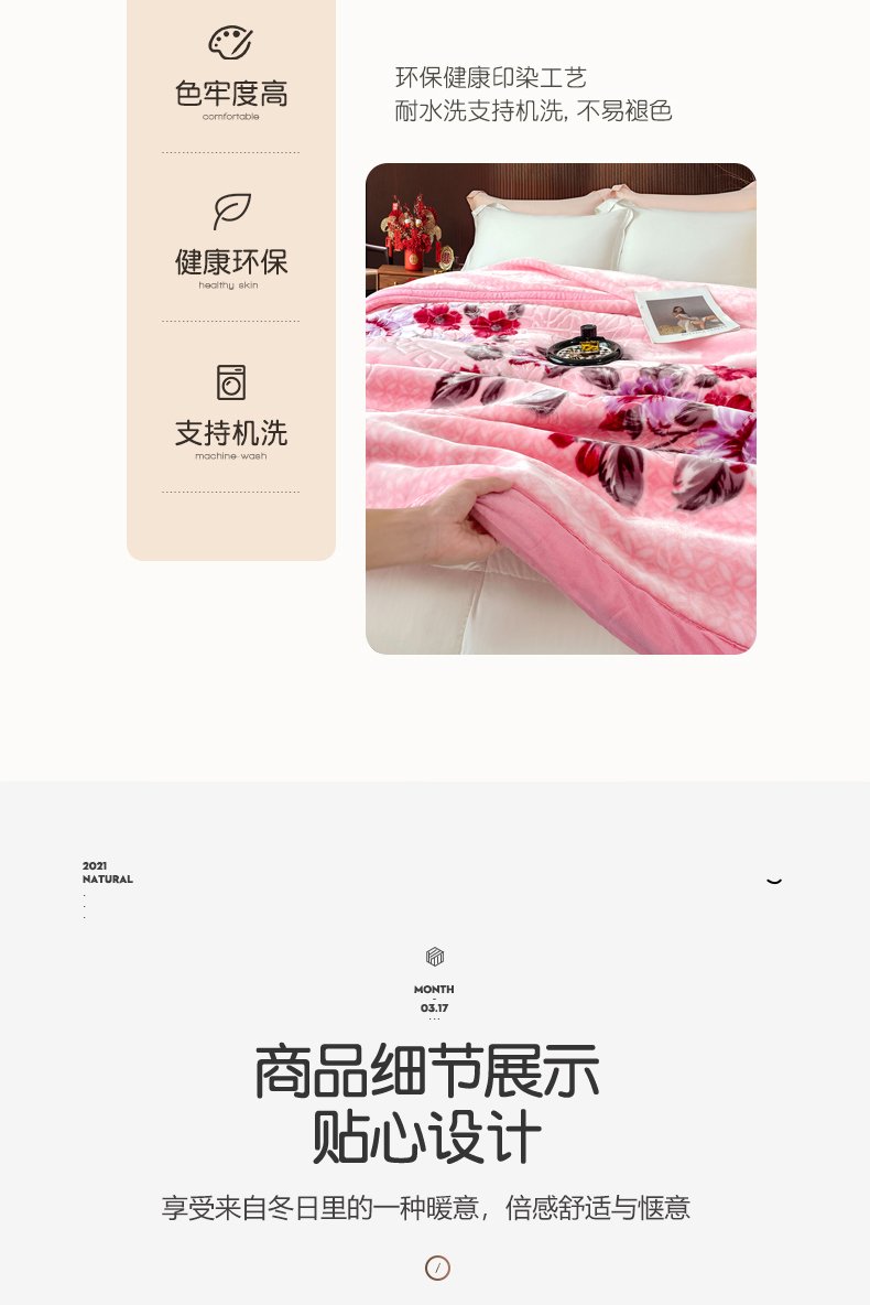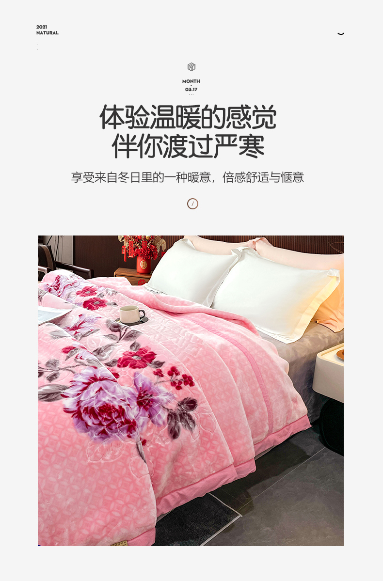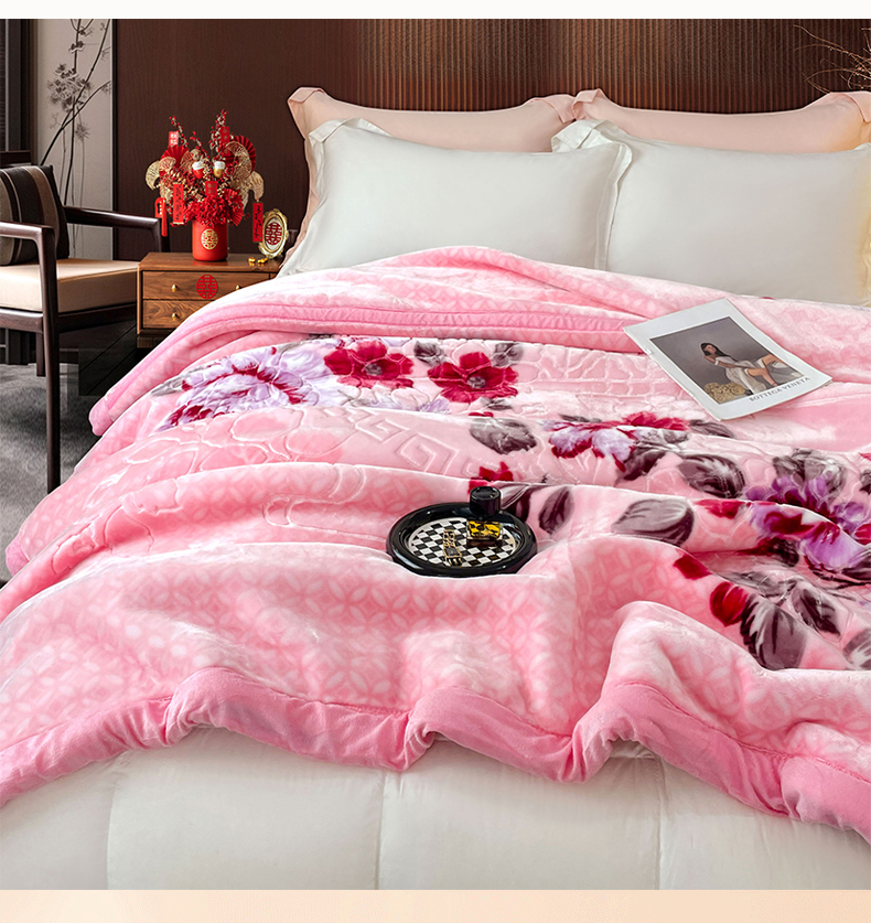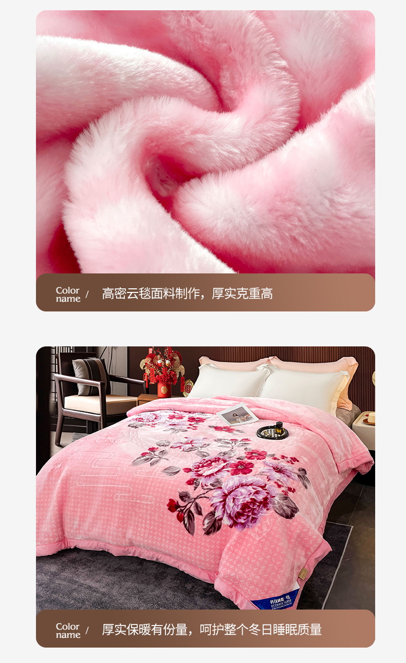 商品名称:凯轩毛毛毯毯子网销专供 2024新款花开盛世5D婚庆云毛毯毯子 花开盛世-粉色