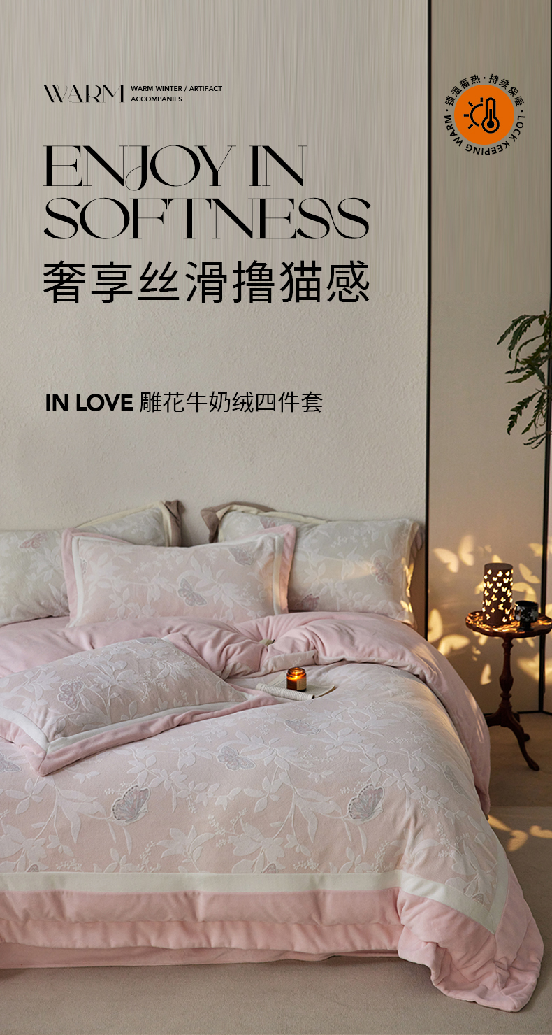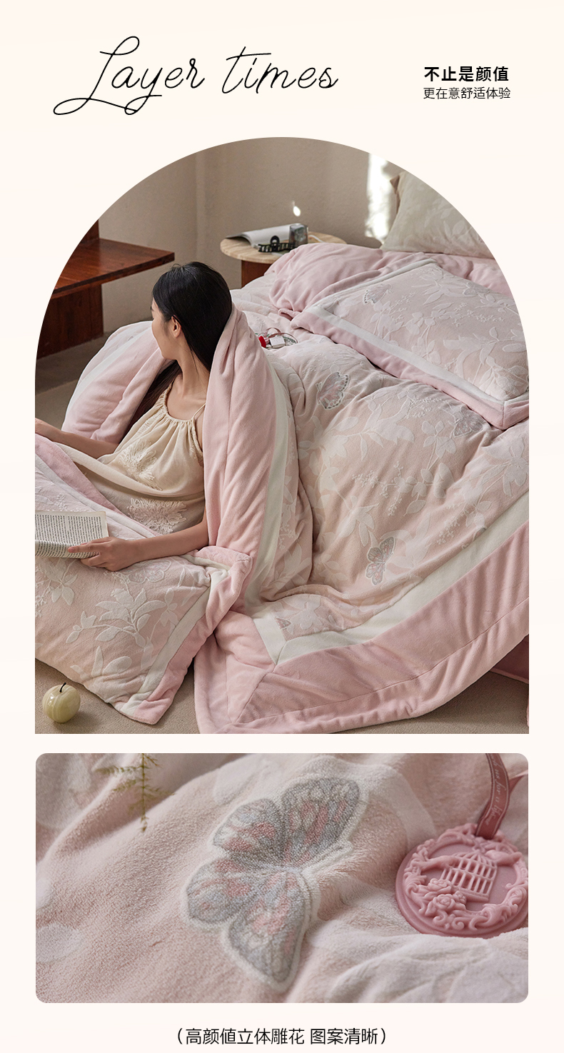 (总)瑞雪家居 2025新款雕花牛奶绒四件套-蝶屿