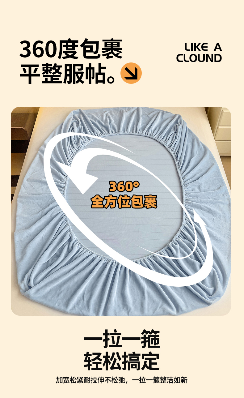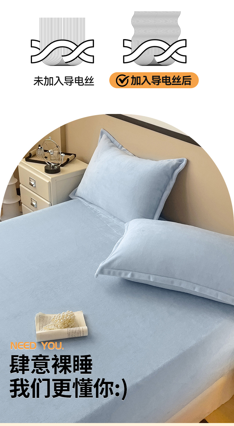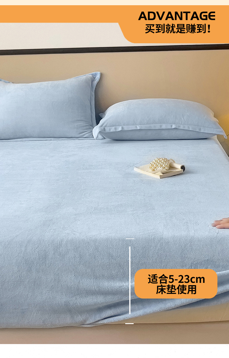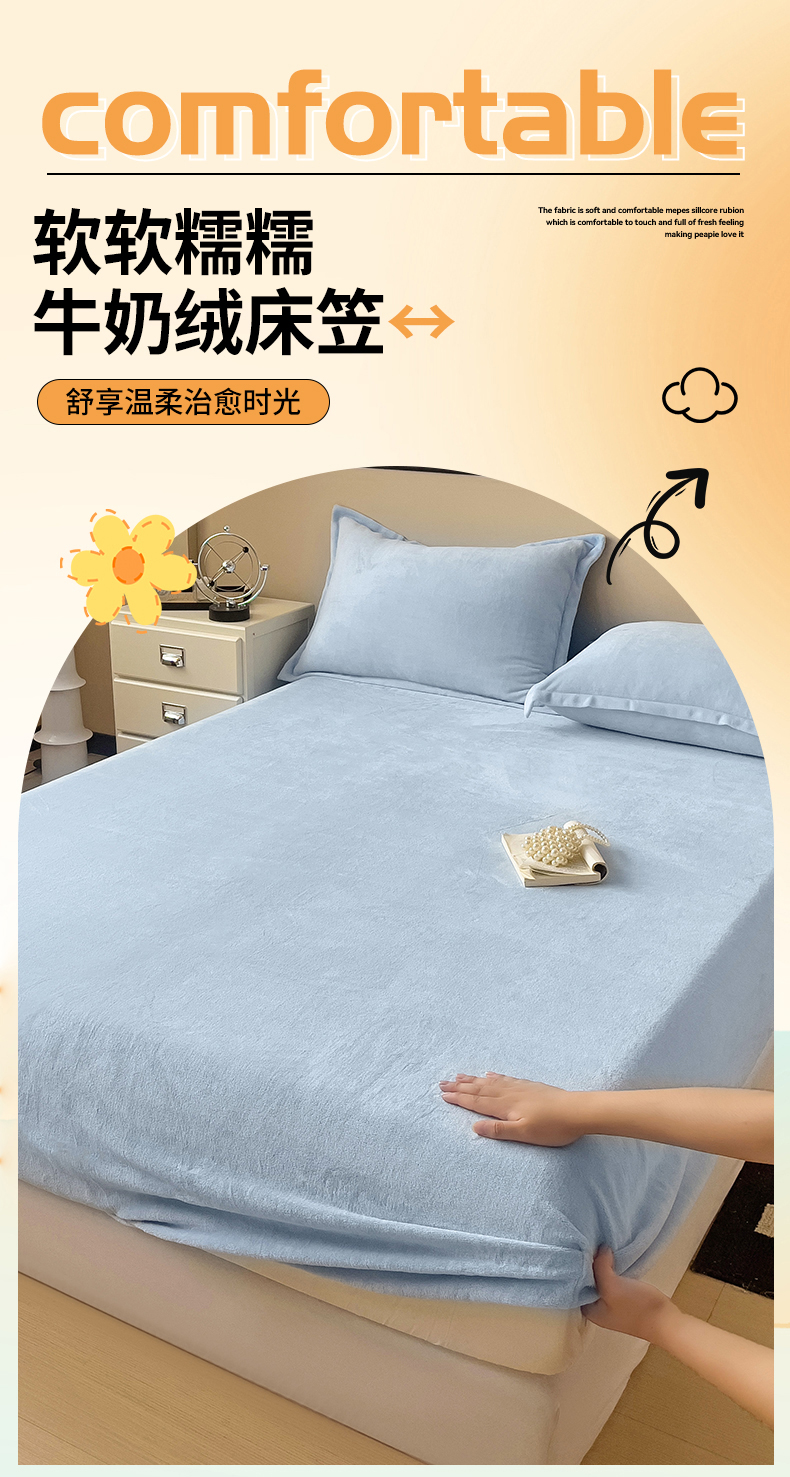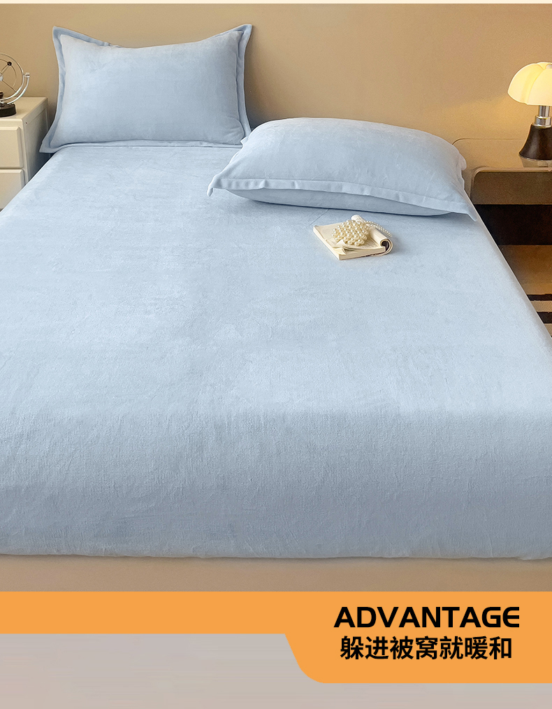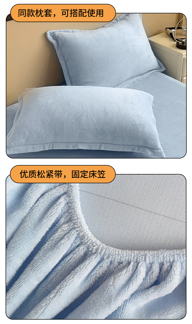 名兮家居 2024新款高克重加厚纯色牛奶绒床笠床单 素色-水蓝