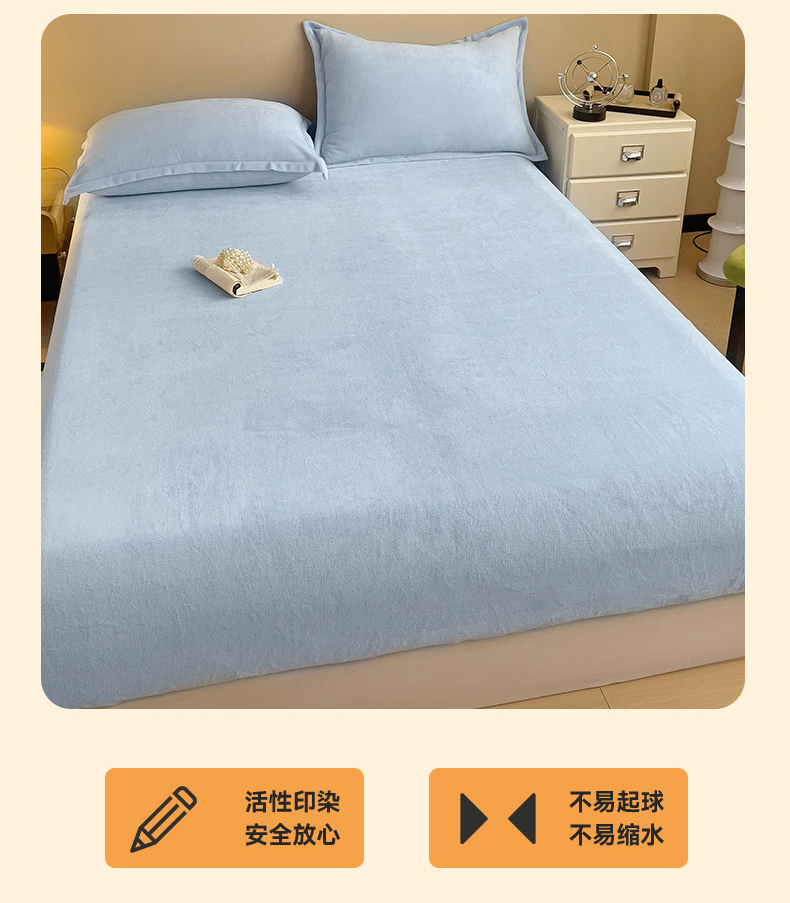 • 91家纺网 家纺一手货源 找家纺 名兮家居 2024新款高克重加厚纯色牛奶绒床笠床单 素色-水蓝
