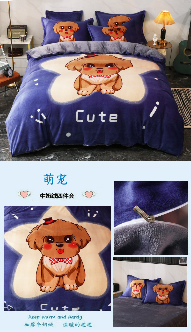 当前位置: 91家纺网 > 商品网购 > 床品套件 > 四件套 > 牛奶绒四件套 > 宝薇 2024新款加厚牛奶绒大版卡通四件套 呆萌狗绒