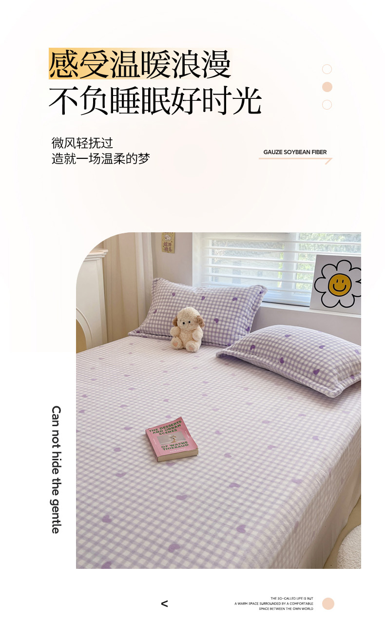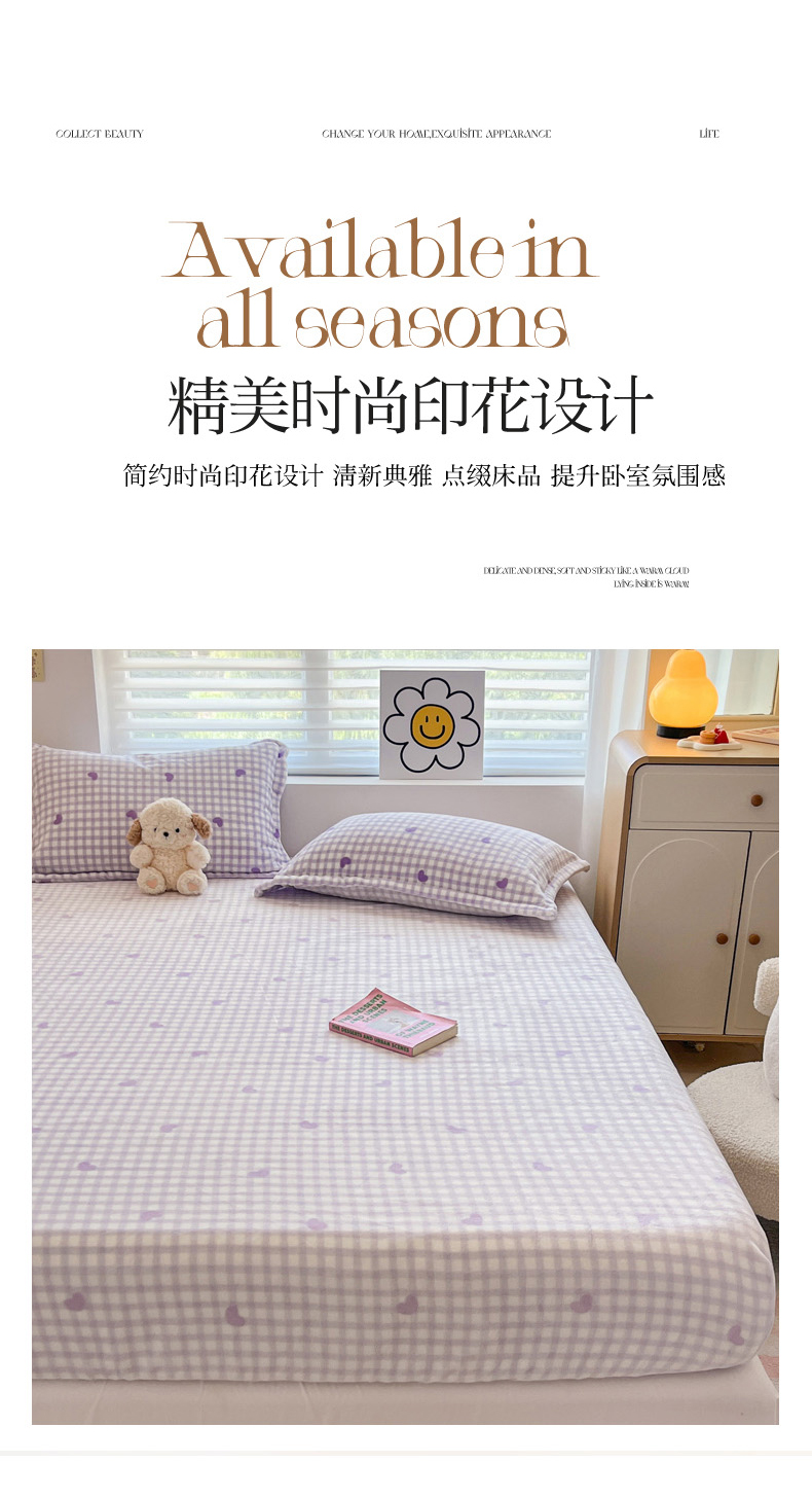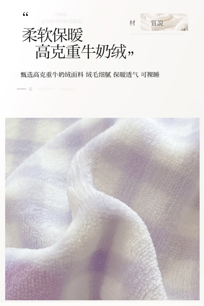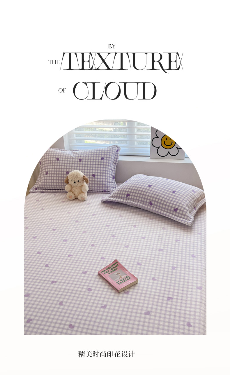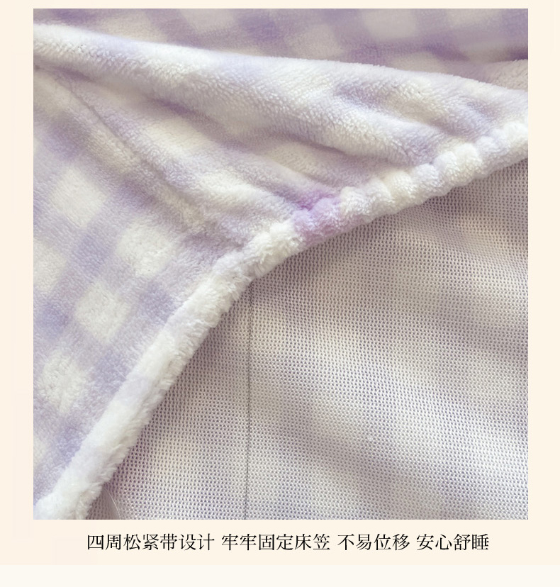 • 91家纺网 家纺一手货源 找家纺 暮思 2024新款ins小清新少女韩系高克重牛奶绒单品床笠三件套 A版-格子甜心-紫紫