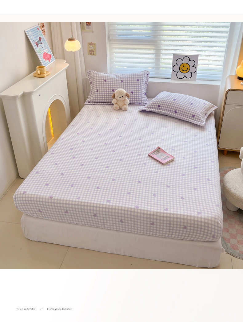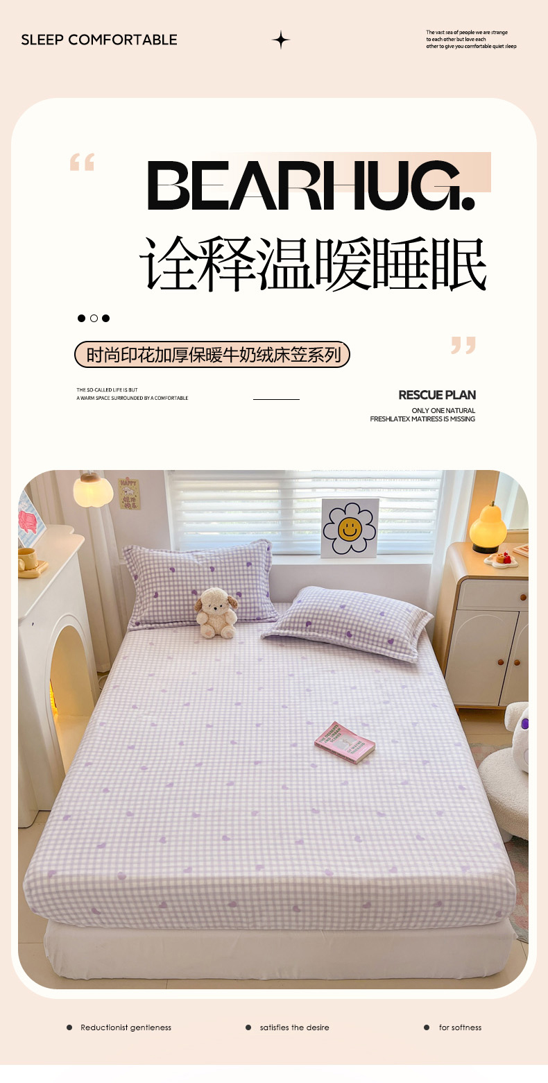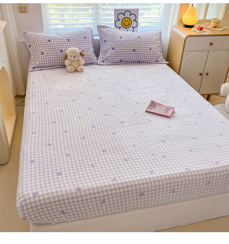 暮思 2024新款ins小清新少女韩系高克重牛奶绒单品床笠三件套 A版-格子甜心-紫紫