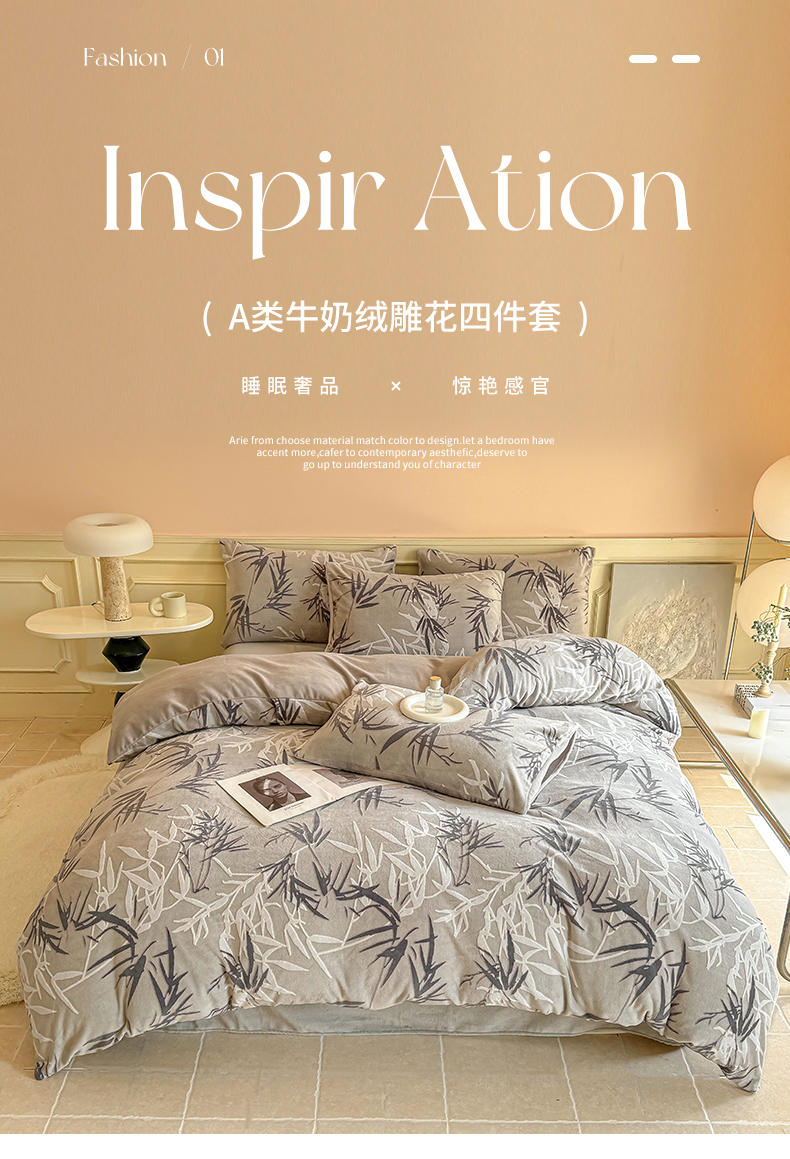 (总)其奥 2025新款8斤A类230克牛奶绒雕花绒宝宝绒四件套床笠款床单款,巴克曼 米灰,可可西里 灰蓝,罗曼 贝壳粉,罗曼 淡灰,罗曼 褐咖,水墨竹 红灰,叶阑 蔷薇粉,郁见 米咖,竹影 奶绿