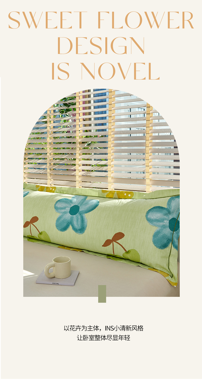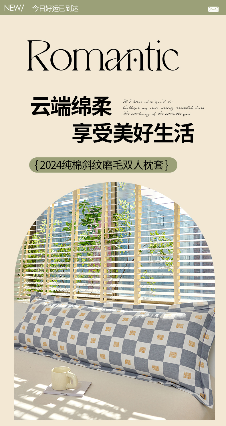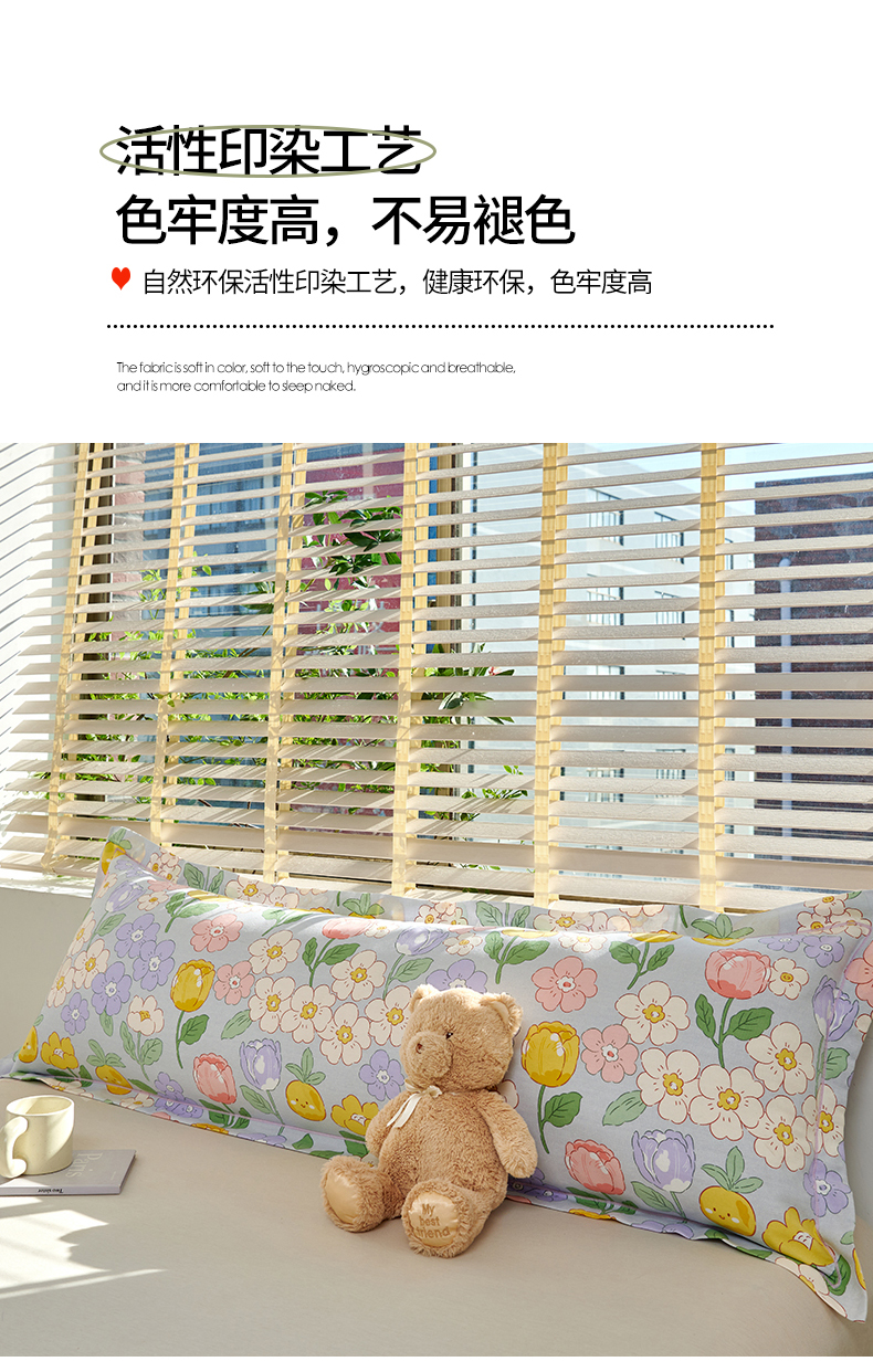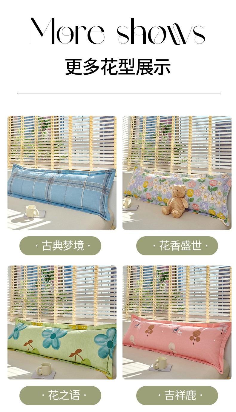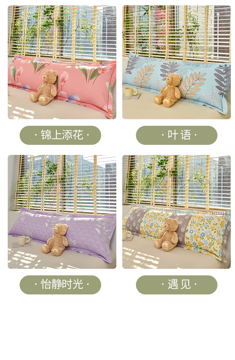 商品名称:美宜家 2025新款四季纯棉斜纹磨毛双人全棉长枕套精品一字绣 吉祥鹿
