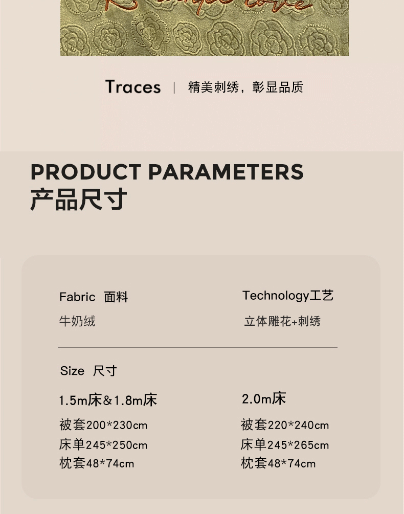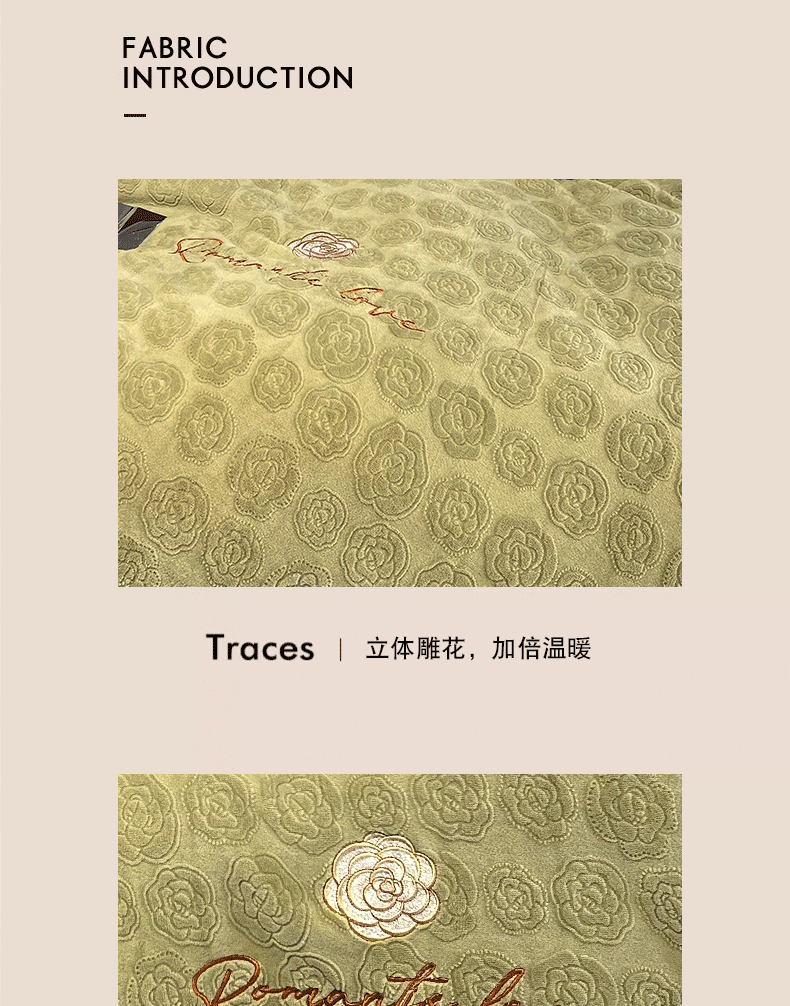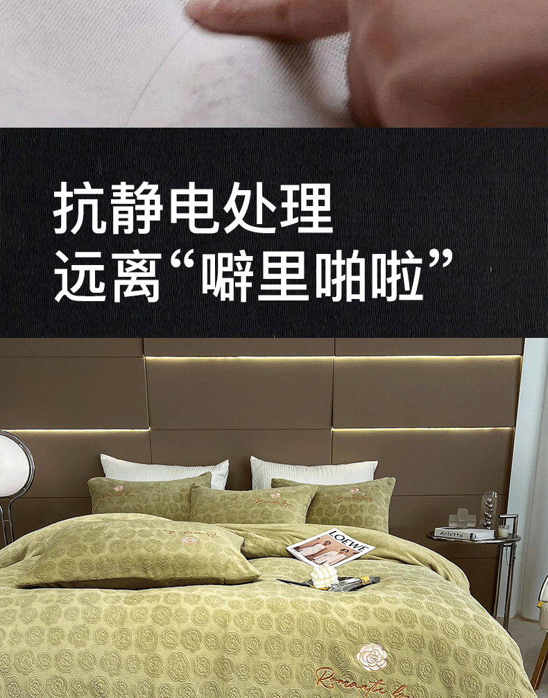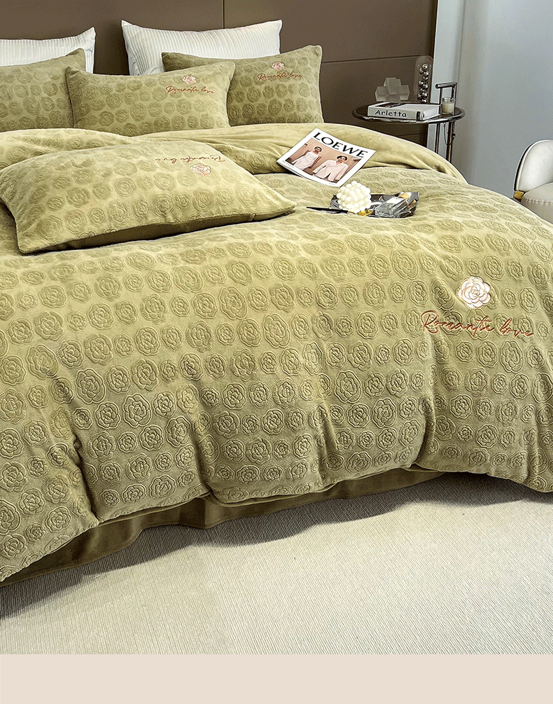 商品名称:眠多宝 2024新款纯色牛奶雕花绒刺绣四件套 抹茶绿