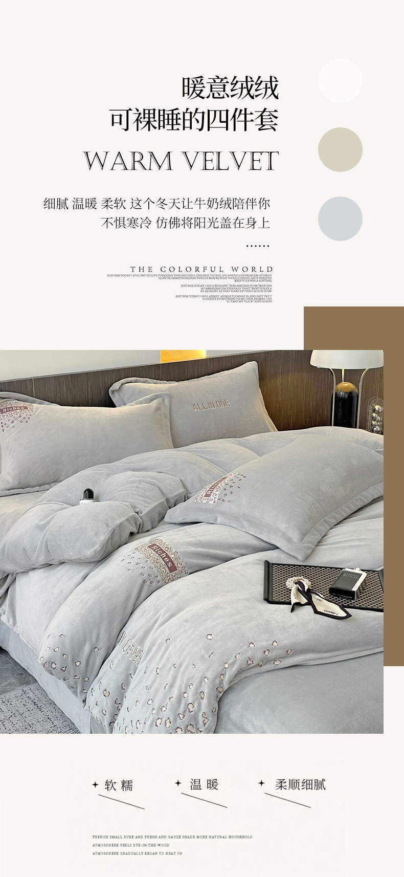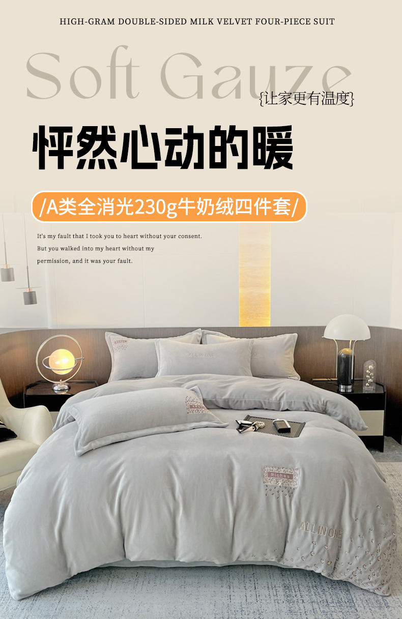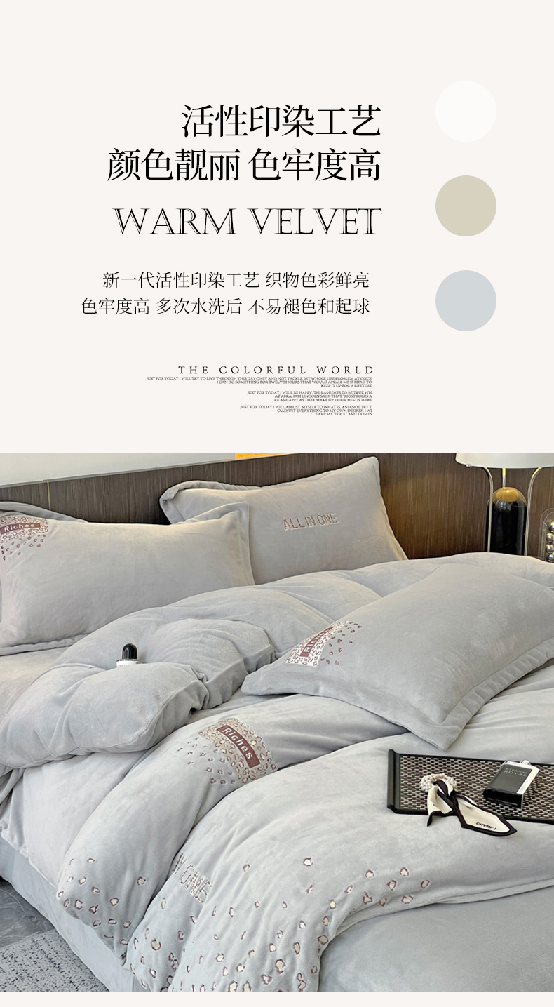 (总)星尚家纺 2024全消光A类230g牛奶绒绣花保暖绒四件套-豹纹,卡其色,奶昔白,时尚灰,芝芝粉