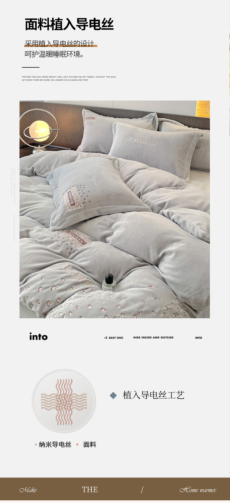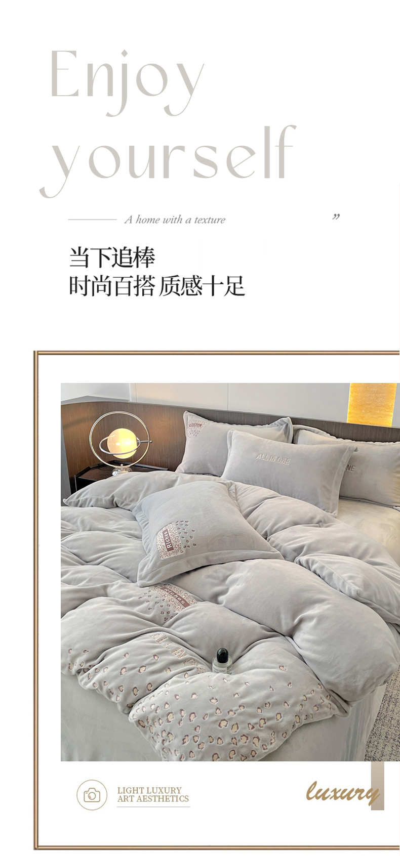 商品名称:星尚家纺 2024全消光A类牛奶绒绣花四件套-豹纹 时尚灰