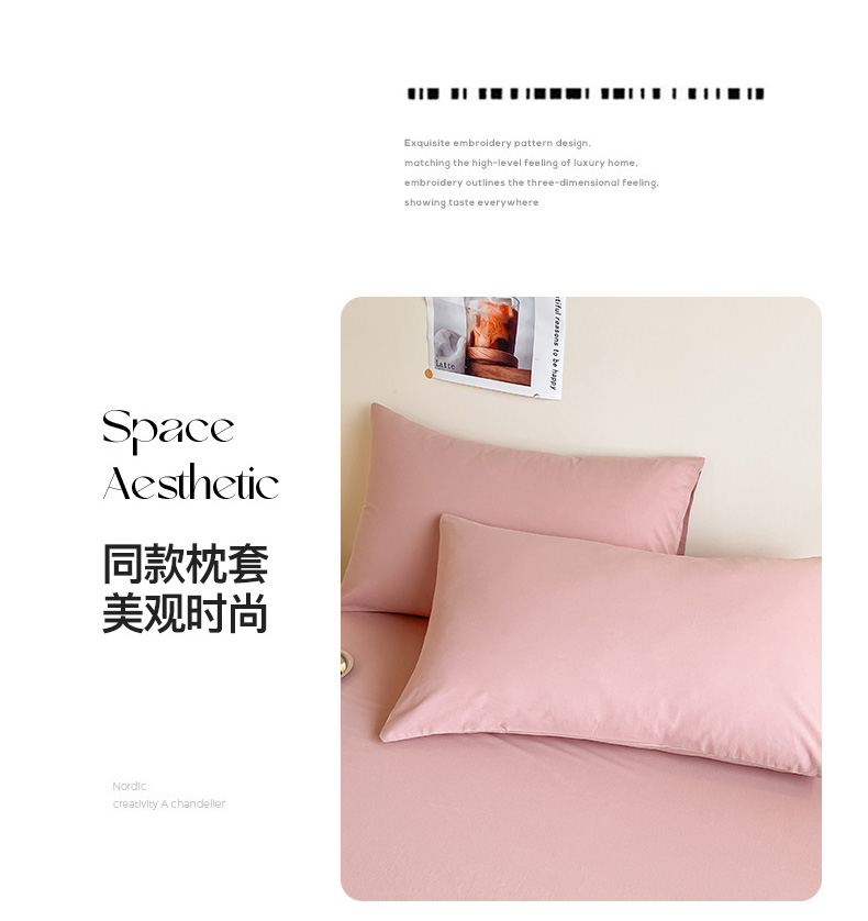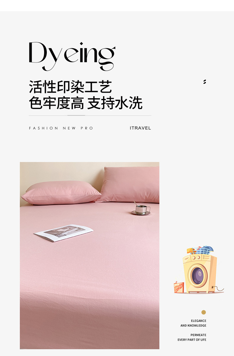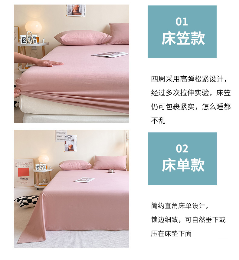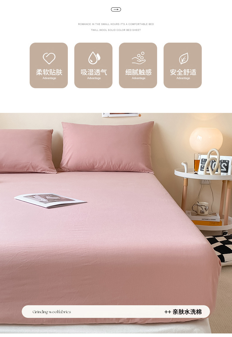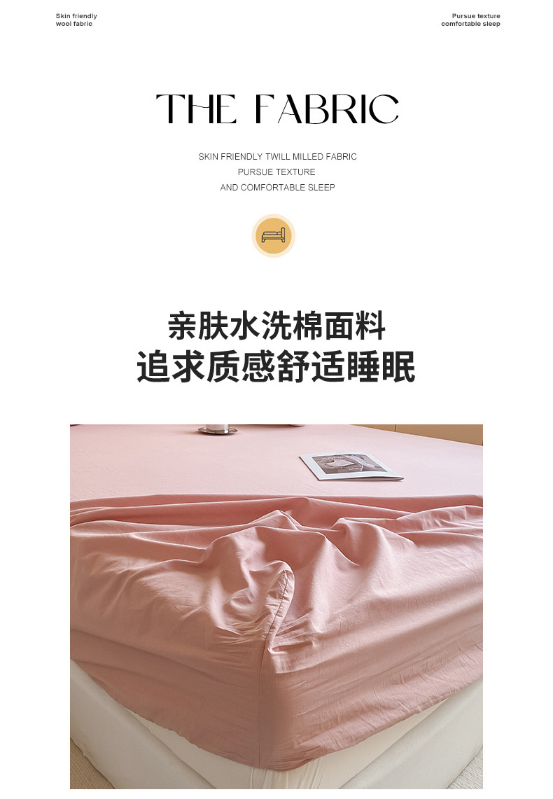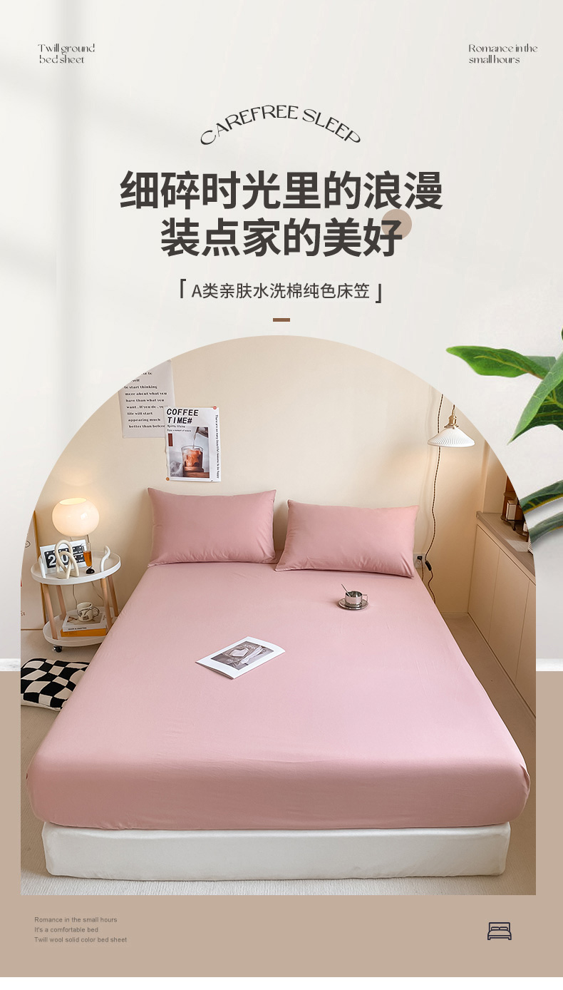 • 91家纺网 家纺一手货源 找家纺 眠帛家居 2024新款A类亲肤水洗棉纯色单品床笠三件套 豆沙