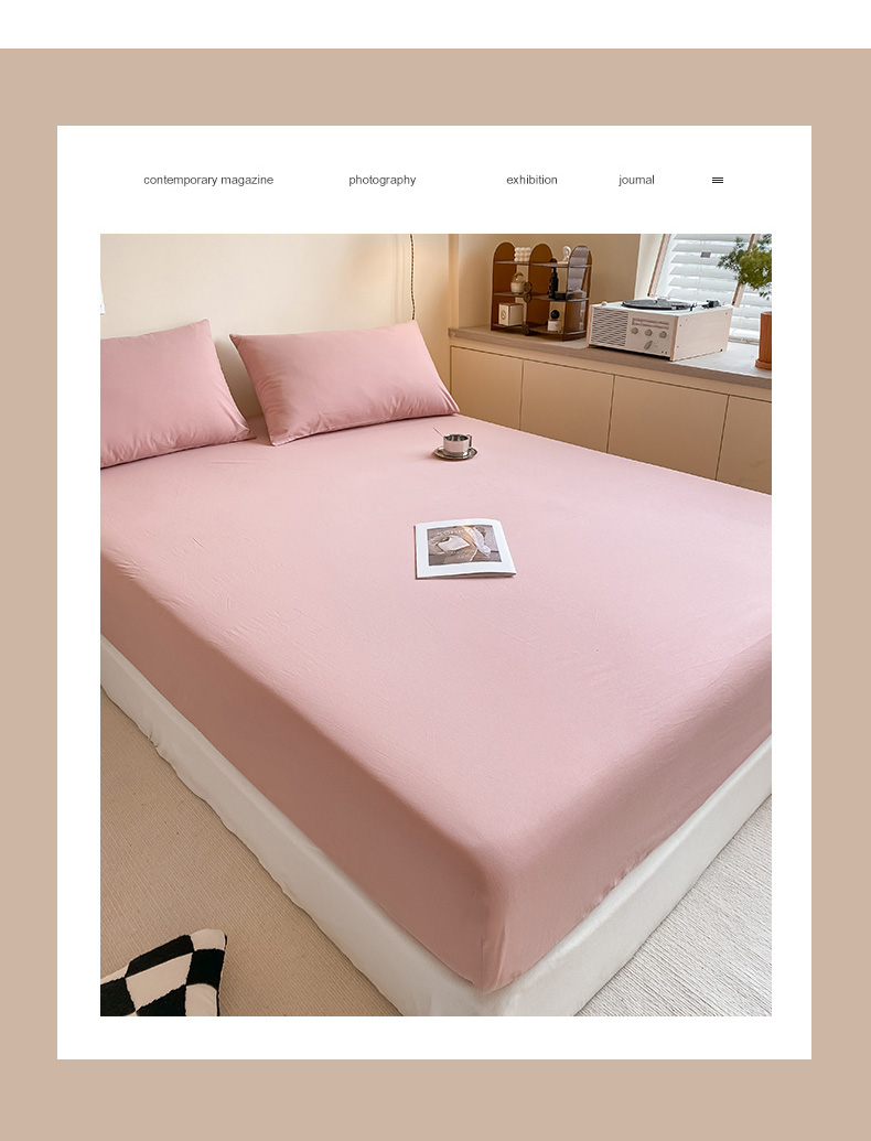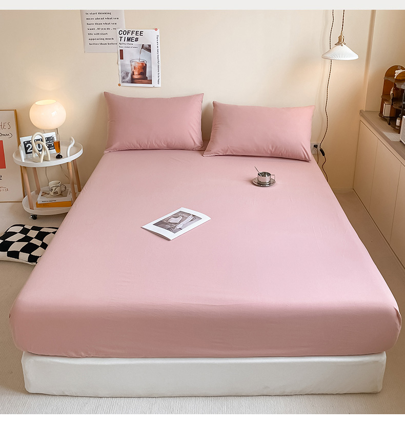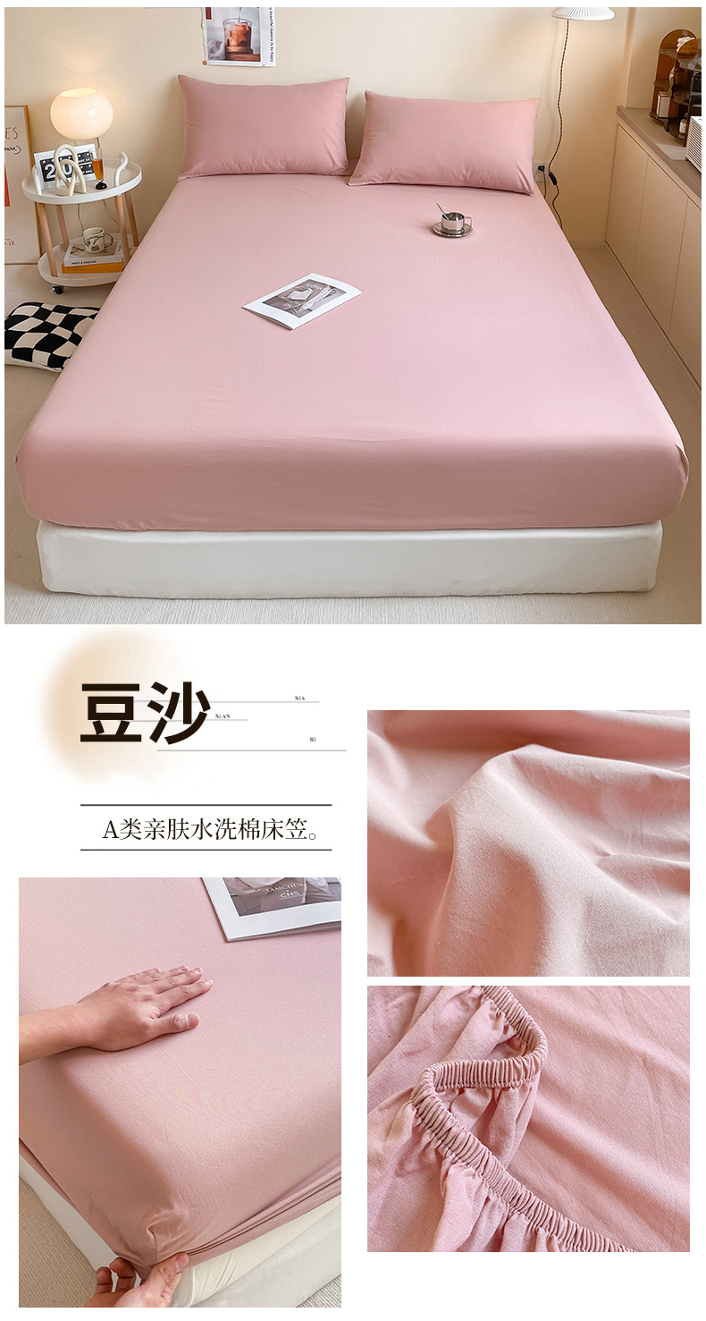 眠帛家居 2024新款A类亲肤水洗棉纯色单品床笠三件套 豆沙